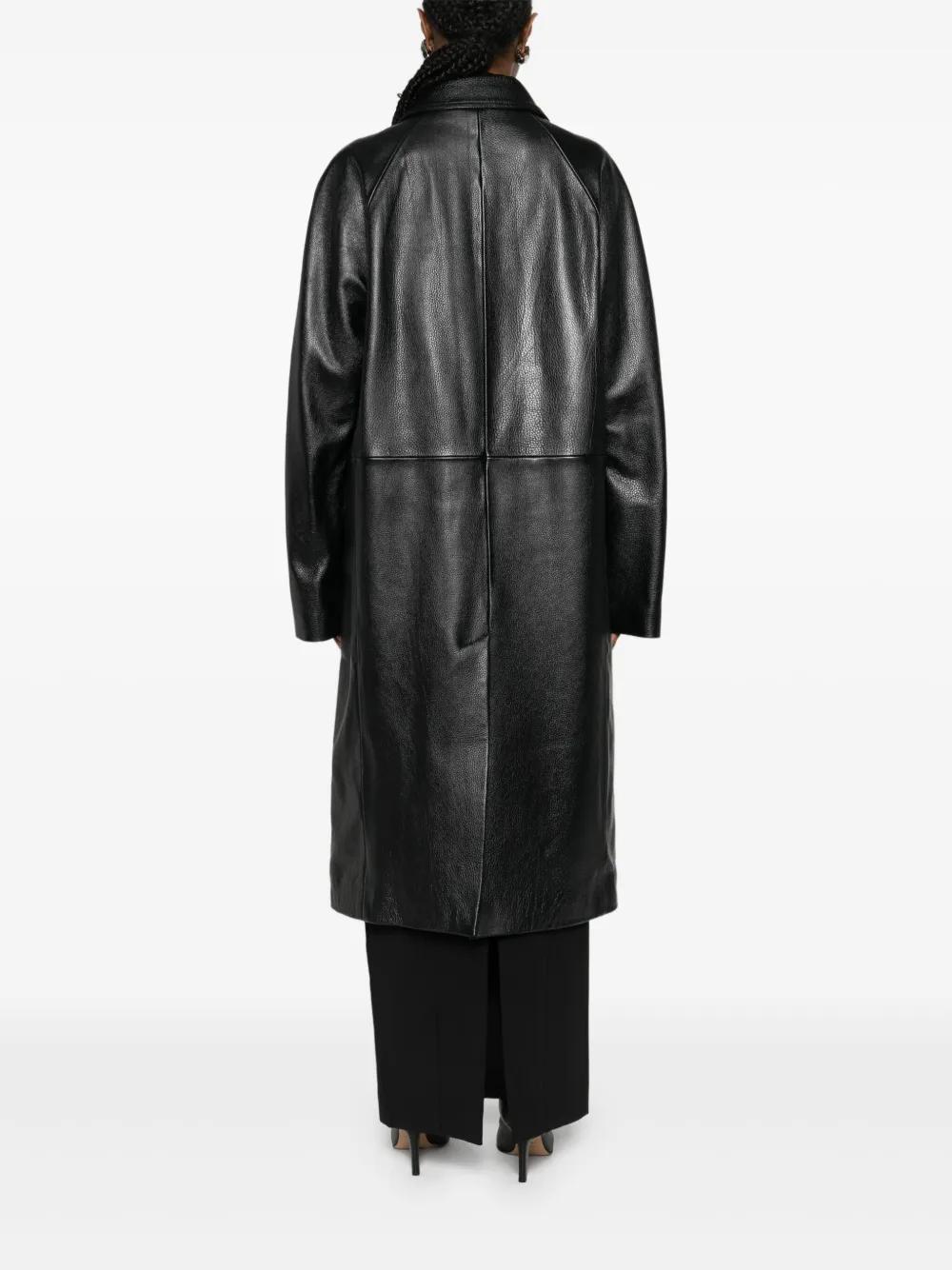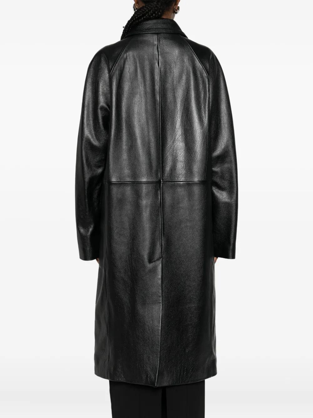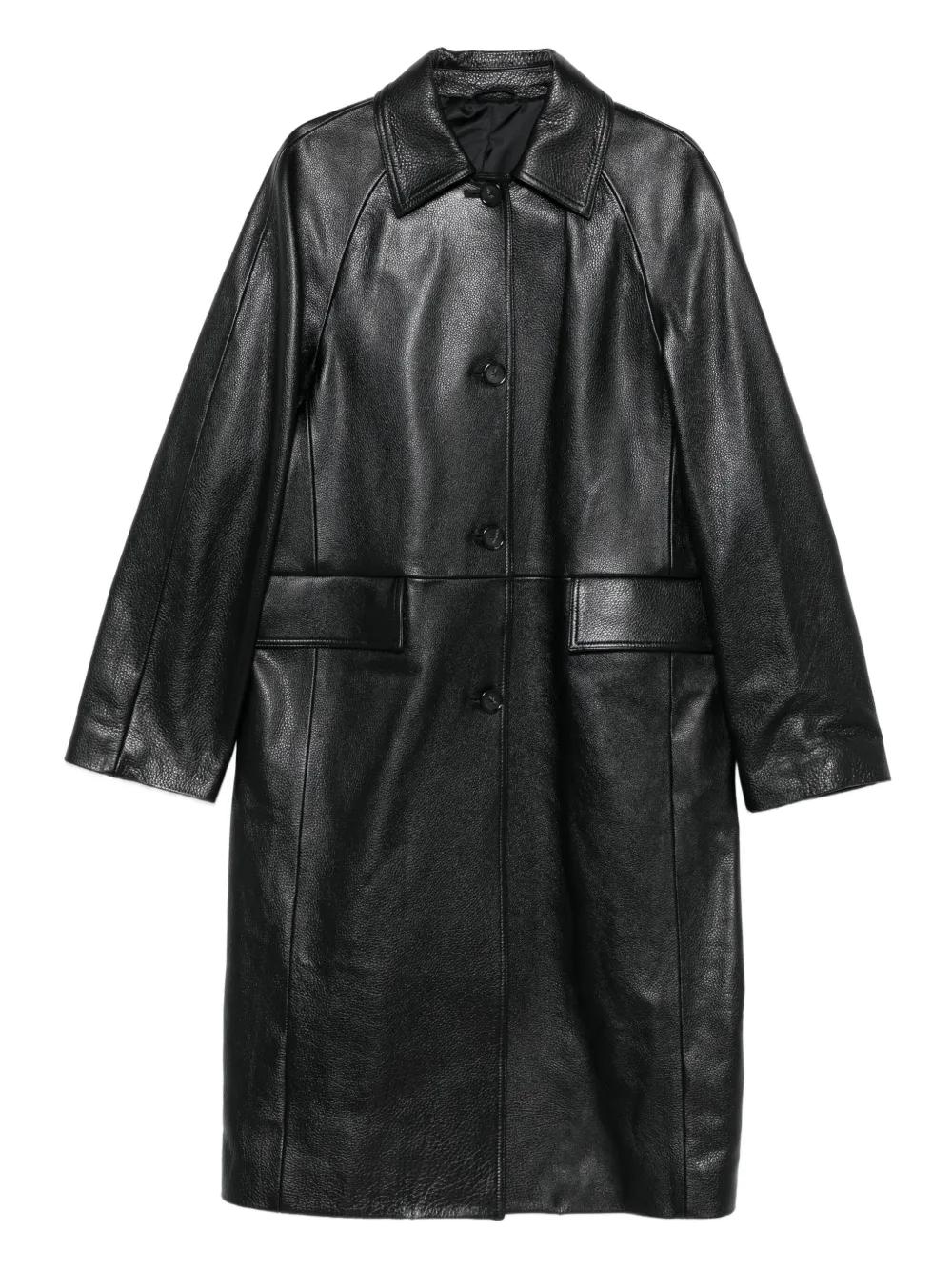 black front button fastening front flap pockets spread collar long sleeves straight hem