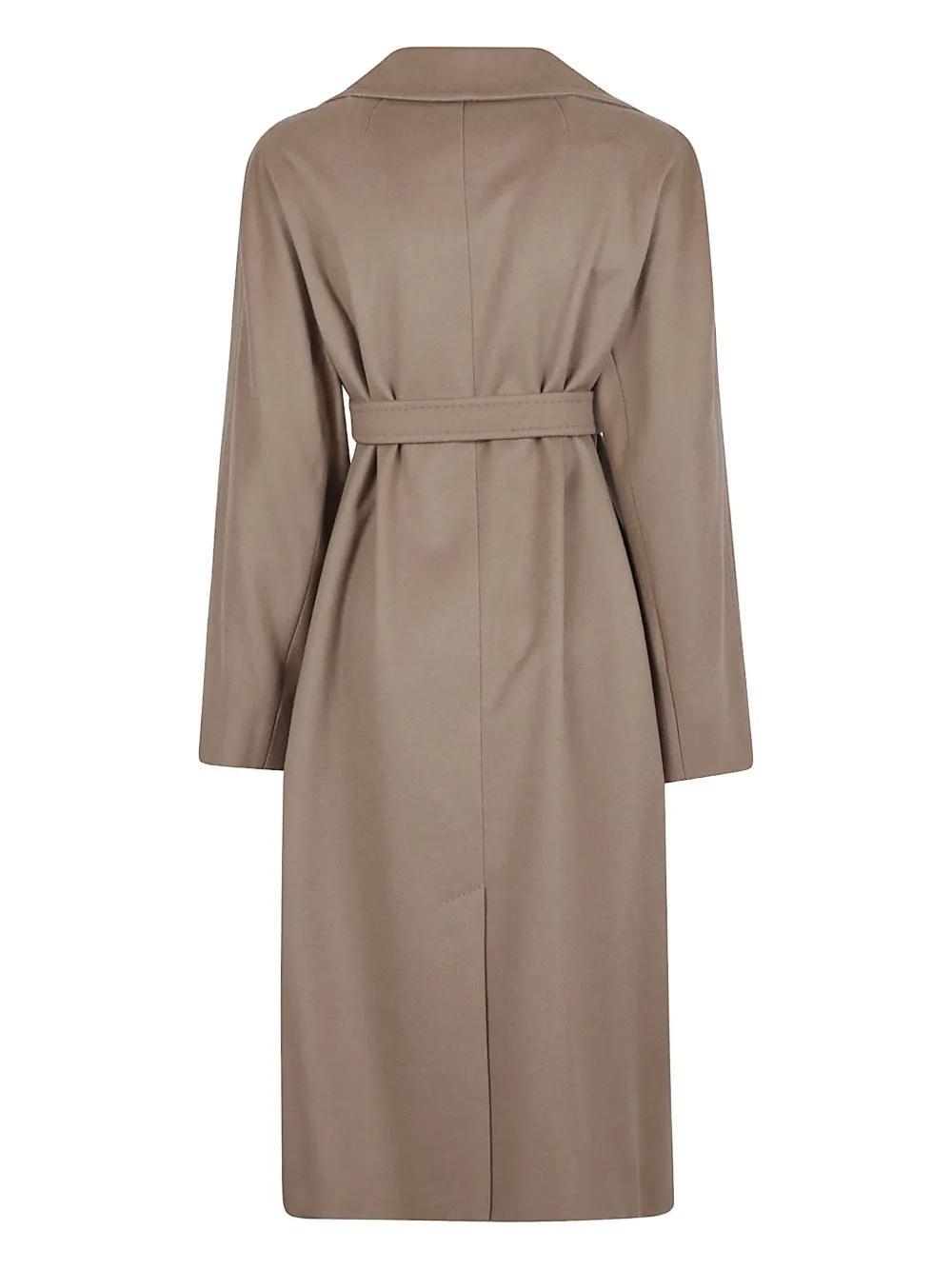 camel double-breasted button fastening belted waist welt pockets long sleeves