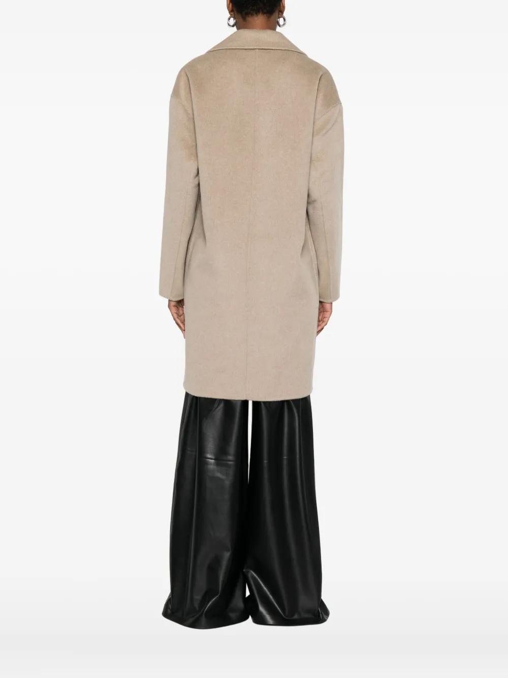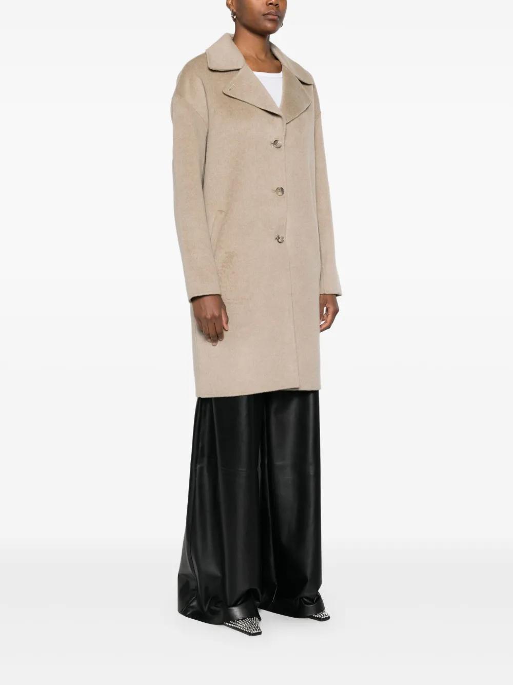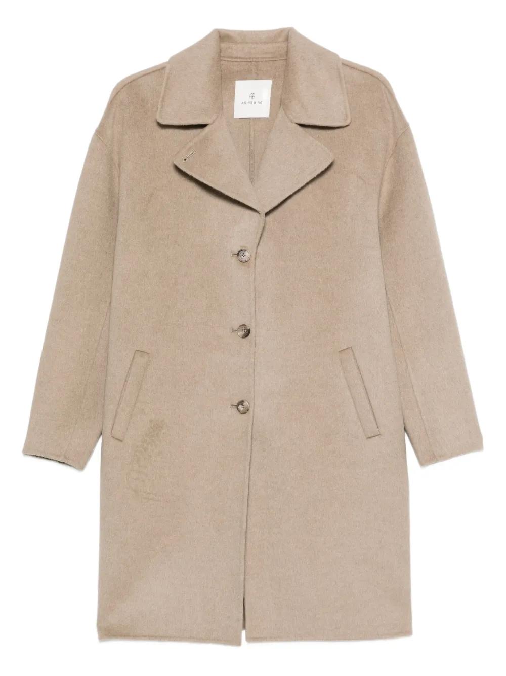 beige button front fastening welt pockets notched lapels long sleeves straight hem