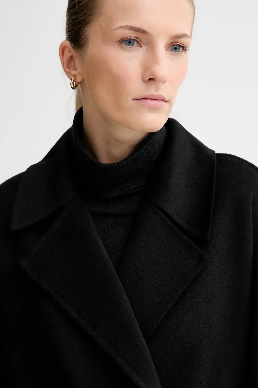 Calvin Klein płaszcz z dodatkiem wełny kolor czarny LV040WL571