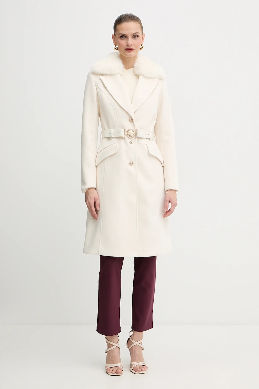 Guess płaszcz z domieszką wełny NEW PATRICE kolor beżowy W5BL25 W2672