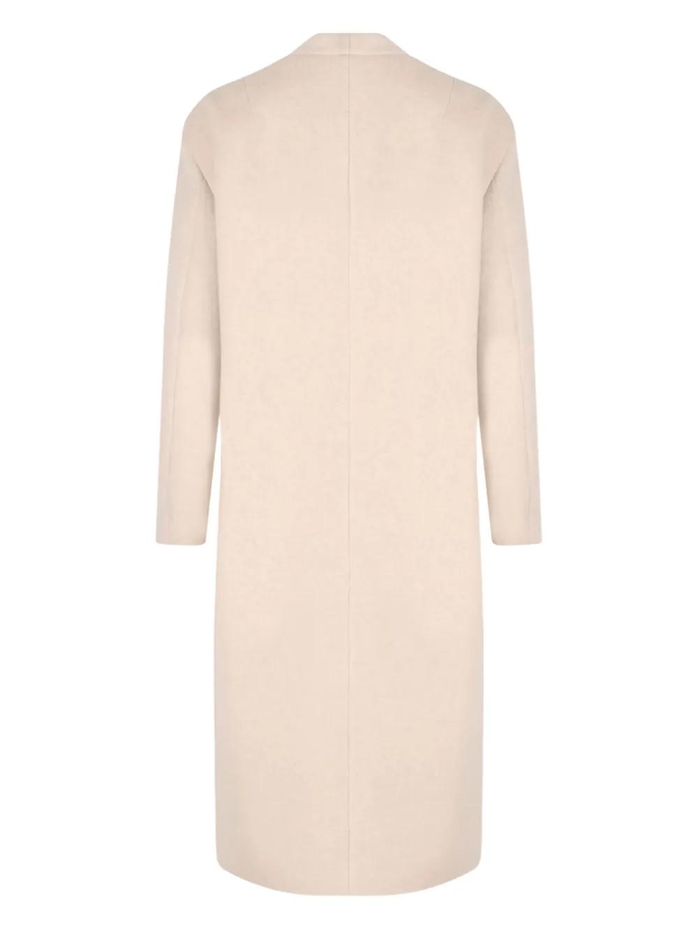 beige wool-blend button fastening flap pockets V-neck long sleeves
