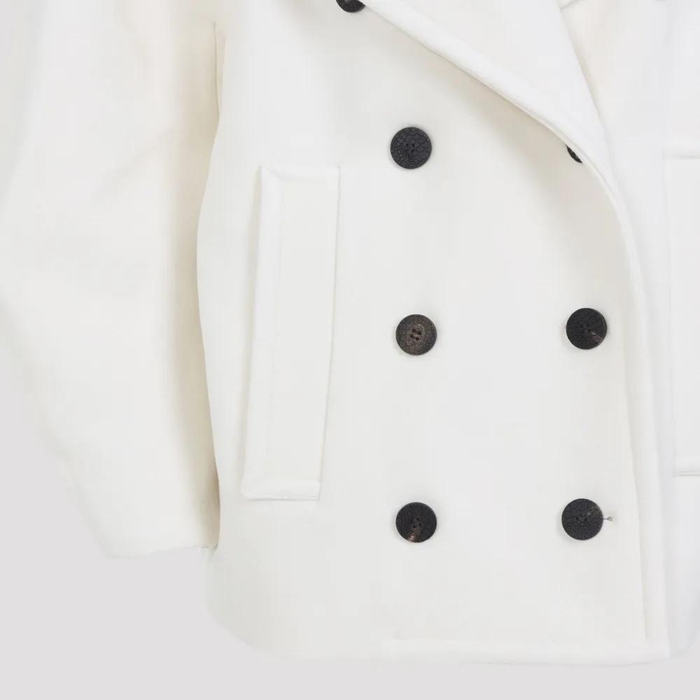 white wool double-breasted fastening notched lapel