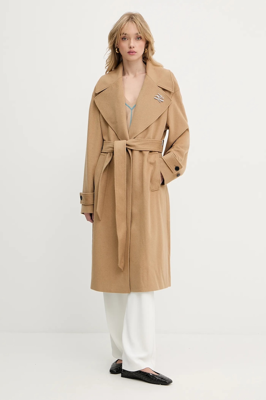 Karl Lagerfeld płaszcz wełniany damski kolor zielony przejściowy A3W15010