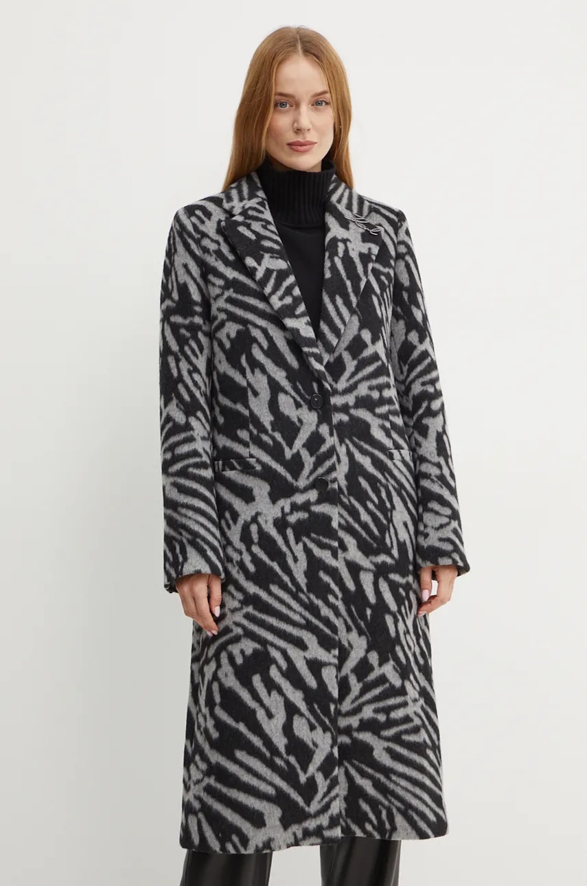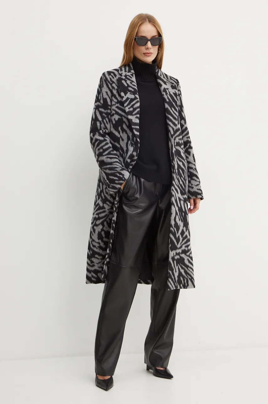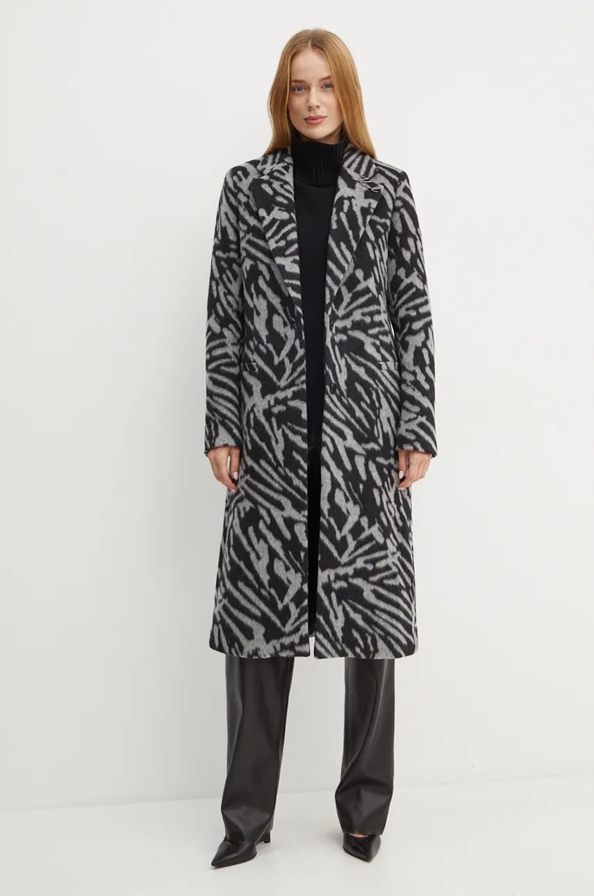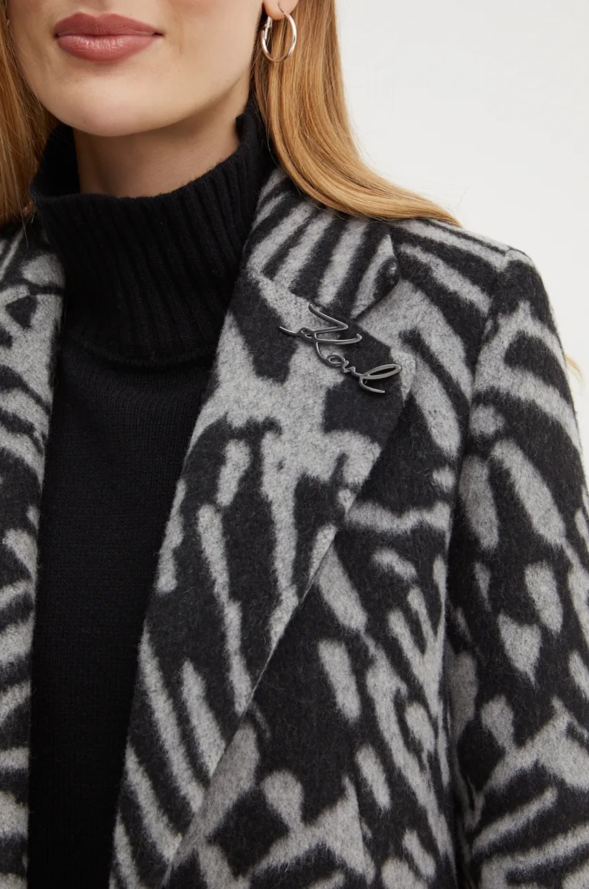 Karl Lagerfeld płaszcz wełniany kolor szary przejściowy 246W1503