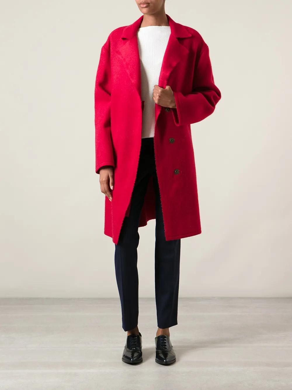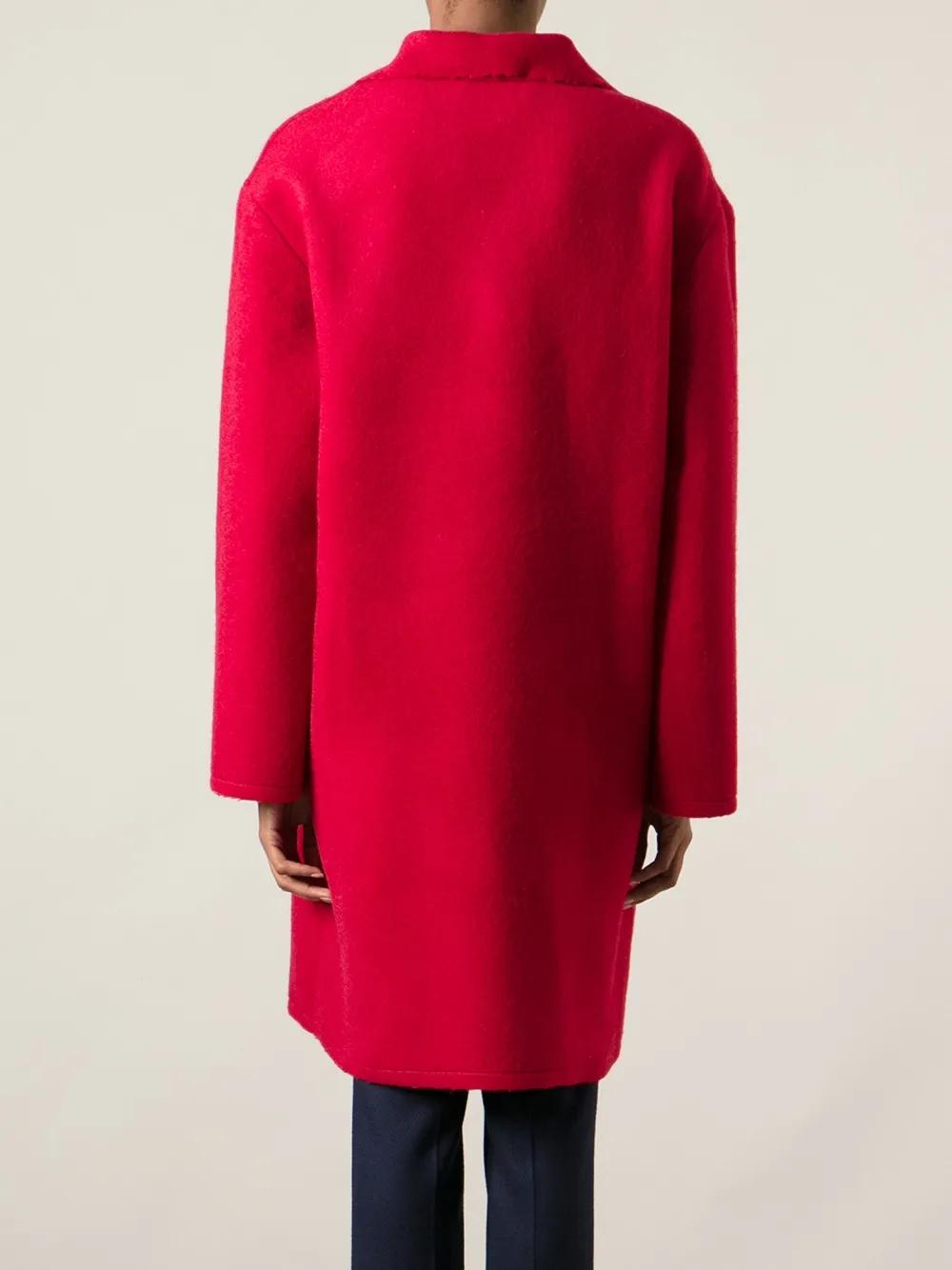 Raspberry mohair and wool single breasted coat from Lanvin featuring notched lapels, long sleeves and a concealed front fastening.
