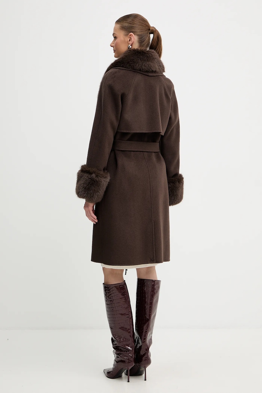 Marciano Guess płaszcz z dodatkiem wełny LILIANA kolor brązowy 5BGL46 7125A