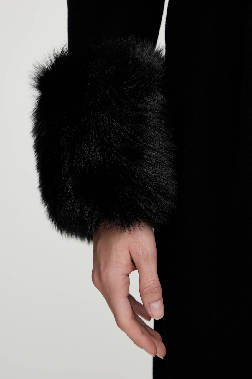 - Prosty, nie blokujący ruchów fason. - Niezapinany model. - Rękaw raglanowy, dzięki swojej konstrukcji, zapewnia większą swobodę ruchu. - W talii pasek, który modeluje sylwetkę i dodatkowo podkreśla talię. - Dwie wsuwane kieszenie boczne. - Model z odpinanym, sztucznym futerkiem. - Model z frędzlami. - Długość rękawa(mierzona od kołnierza): 76 cm. - Długość: 104 cm. - Szerokość pod pachami: 44 cm. - Wymiary podane dla rozmiaru: 36.