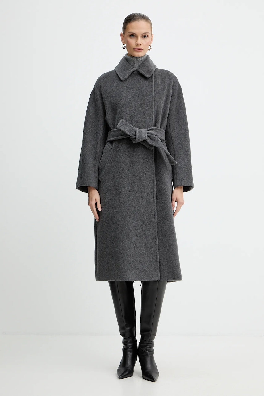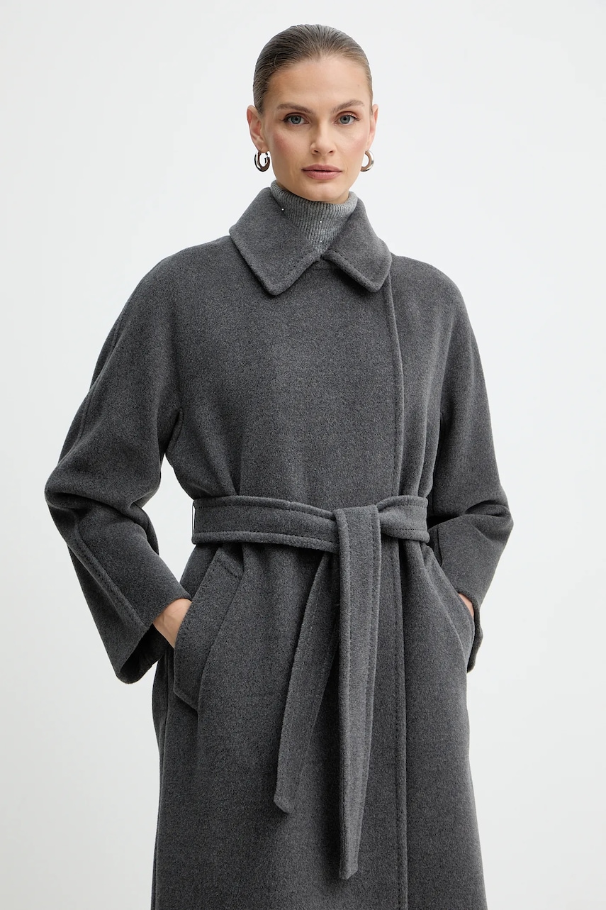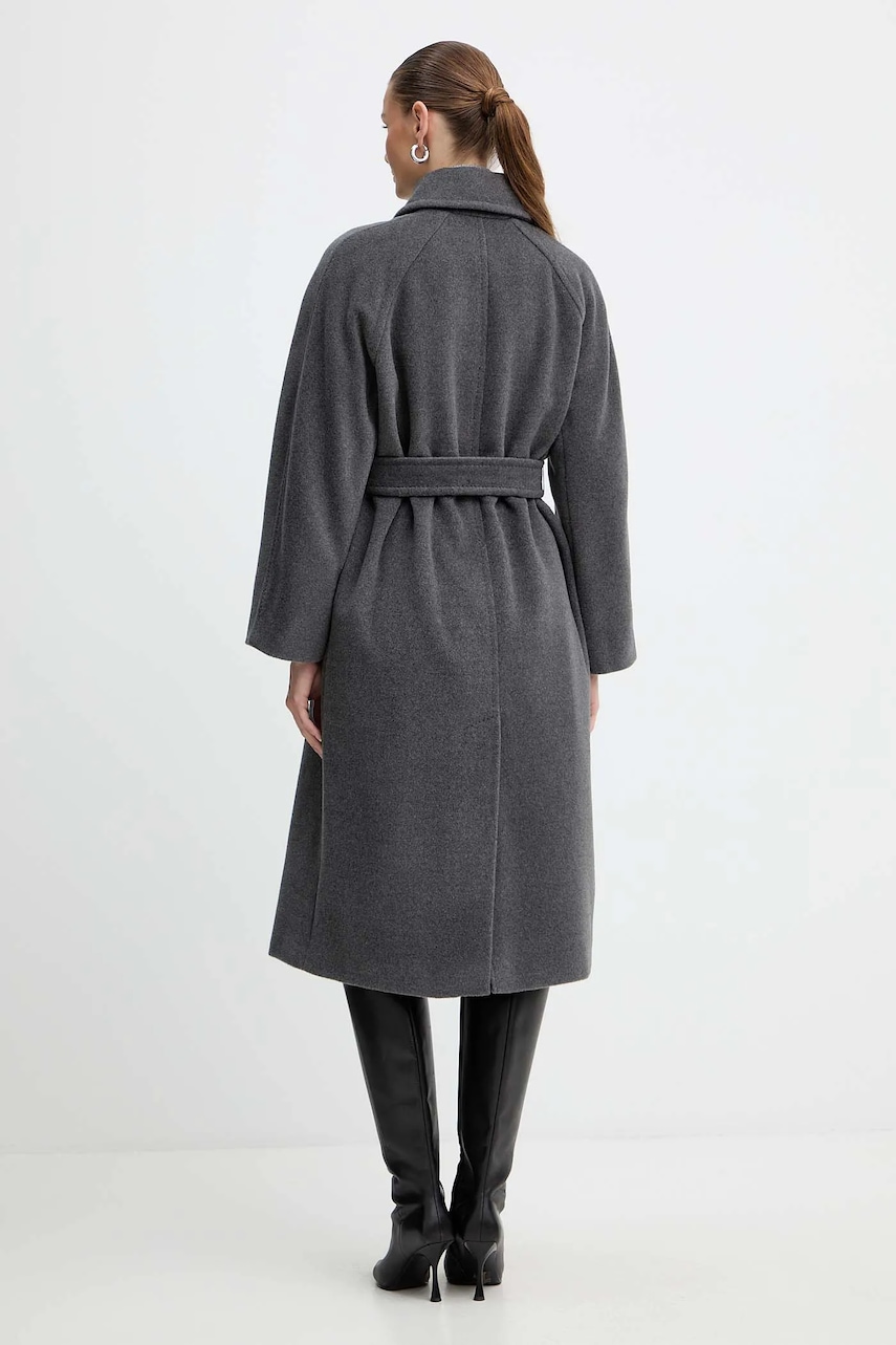 - Fason oversize. - Nieocieplony model na podszewce. - Dwurzędowe zapięcie na guziki. - Klasyczne klapy. - Wsuwane kieszenie. - W talii pasek, który modeluje sylwetkę i dodatkowo podkreśla talię. - Cienki materiał. - Długość rękawa(mierzona od kołnierza): 72 cm. - Długość: 110 cm. - Szerokość pod pachami: 55 cm. - Wymiary podane dla rozmiaru: 34.