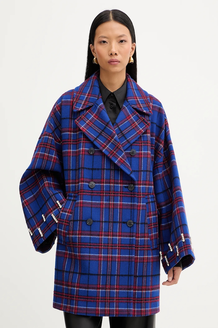 - Produkt zawiera wełnę pozyskaną w etyczny sposób, z hodowli dbającej o odpowiednie warunki życia zwierząt. - Luźny krój zapewniający pełną swobodę ruchów. - Dwurzędowe zapięcie na guziki. - Klasyczne klapy. - Krój rękawa z obniżoną linią ramion nie ogranicza mobilności. - Wsuwane kieszenie zewnętrzne. - Ozdobne detale. - Długość rękawa(mierzona od kołnierza): 71 cm. - Długość: 80 cm. - Szerokość pod pachami: 54 cm. - Wymiary podane dla rozmiaru: 34.