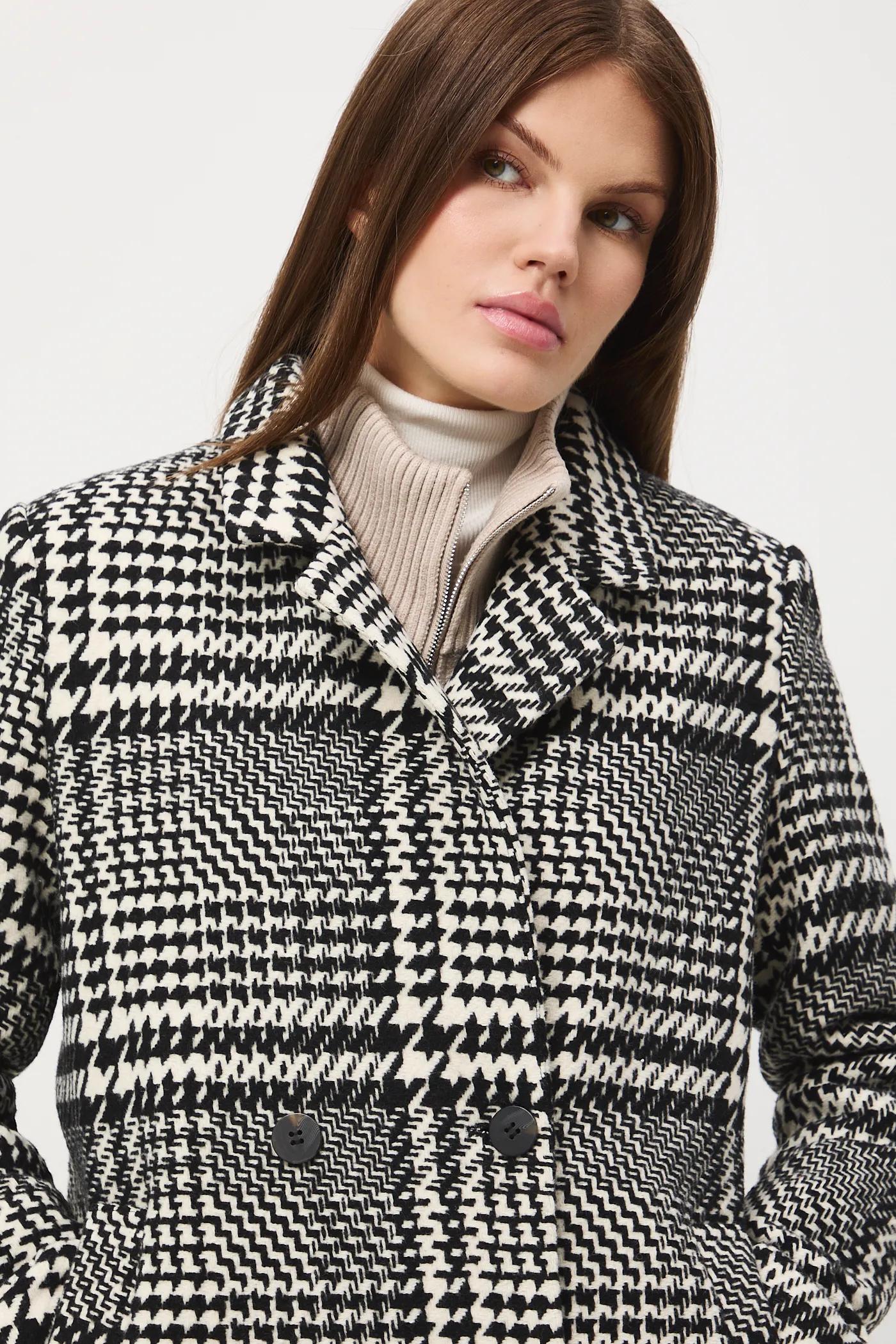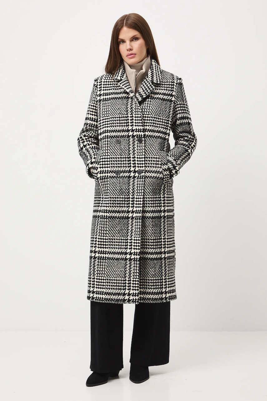 - Fason regular. - Długi rękaw. - Dwurzędowe zapięcie na guziki. - Klasyczne klapy. - Dwie wsuwane kieszenie boczne. - Rozcięcie z tyłu. - Nieocieplony model na podszewce. - Wzorzysty materiał. - Wzór w kratę. - Model wykonany z materiału z domieszką wełny. - Długość rękawa: 64 cm. - Szerokość w biuście: 54 cm. - Szerokość w barkach: 41 cm. - Długość: 119 cm. - Wymiary podane dla rozmiaru: S.