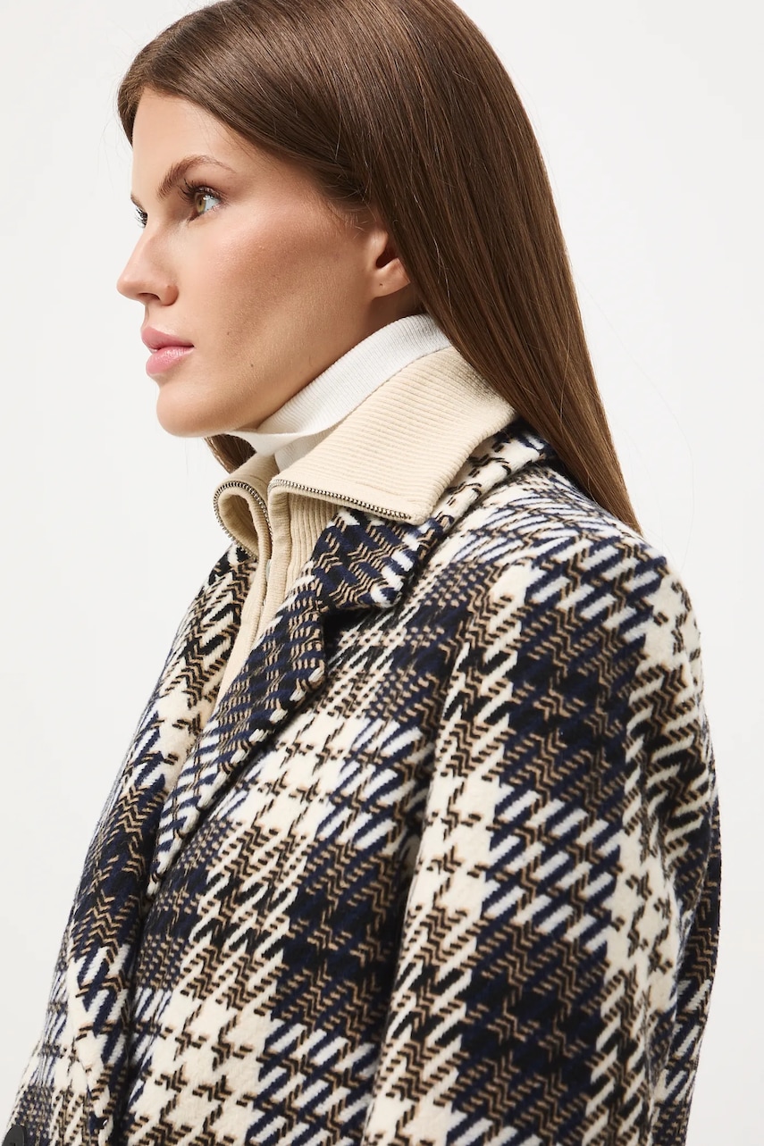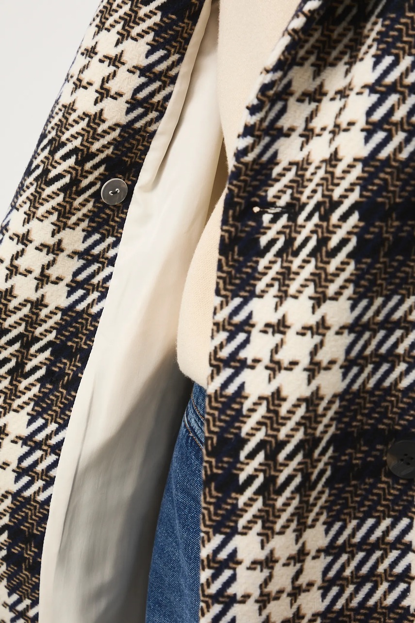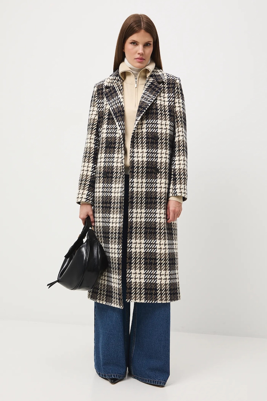 - Fason regular. - Długi rękaw. - Dwurzędowe zapięcie na guziki. - Klasyczne klapy. - Dwie wsuwane kieszenie boczne. - Rozcięcie z tyłu. - Nieocieplony model na podszewce. - Wzorzysty materiał. - Wzór w kratę. - Model wykonany z materiału z domieszką wełny. - Długość rękawa: 64 cm. - Szerokość w biuście: 54 cm. - Szerokość w barkach: 41 cm. - Długość: 119 cm. - Wymiary podane dla rozmiaru: S.