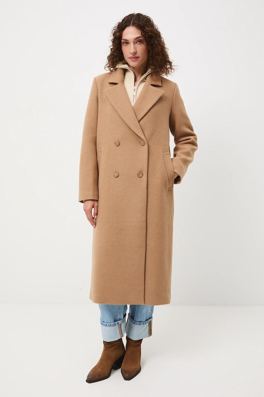 - Fason regular. - Dwurzędowe zapięcie na guziki. - Klasyczne klapy. - Dwie wsuwane kieszenie boczne. - Rozcięcie z tyłu. - Nieocieplony model na podszewce. - Model wykonany z materiału z domieszką wełny. - Gładki materiał. - Długość rękawa: 64 cm. - Szerokość w biuście: 54 cm. - Szerokość w barkach: 40 cm. - Wymiary podane dla rozmiaru: S.