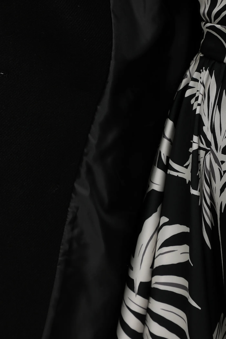 - Dopasowany, podkreślający sylwetkę fason. - Nieocieplony model na podszewce. - Dwurzędowe zapięcie na guziki. - Model z kołnierzykiem. - W talii pasek, który modeluje sylwetkę i dodatkowo podkreśla talię. - Wsuwane kieszenie. - Długość rękawa: 59 cm. - Długość: 89 cm. - Szerokość pod pachami: 51 cm. - Szerokość w ramionach: 36 cm. - Wymiary podane dla rozmiaru: 36.
