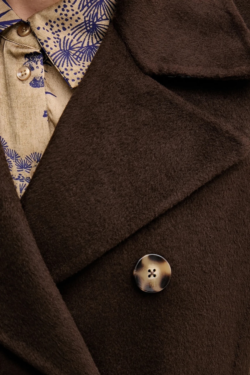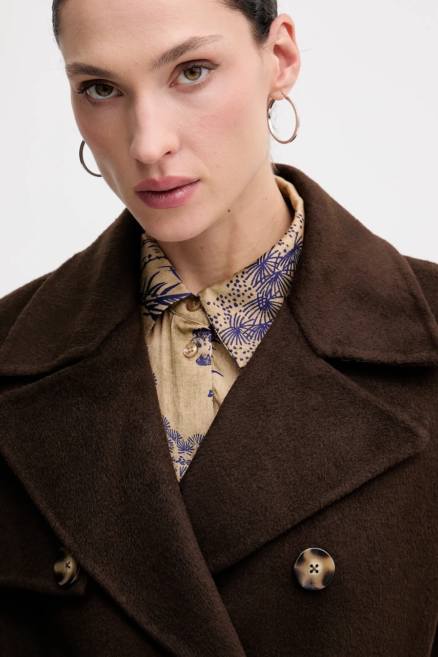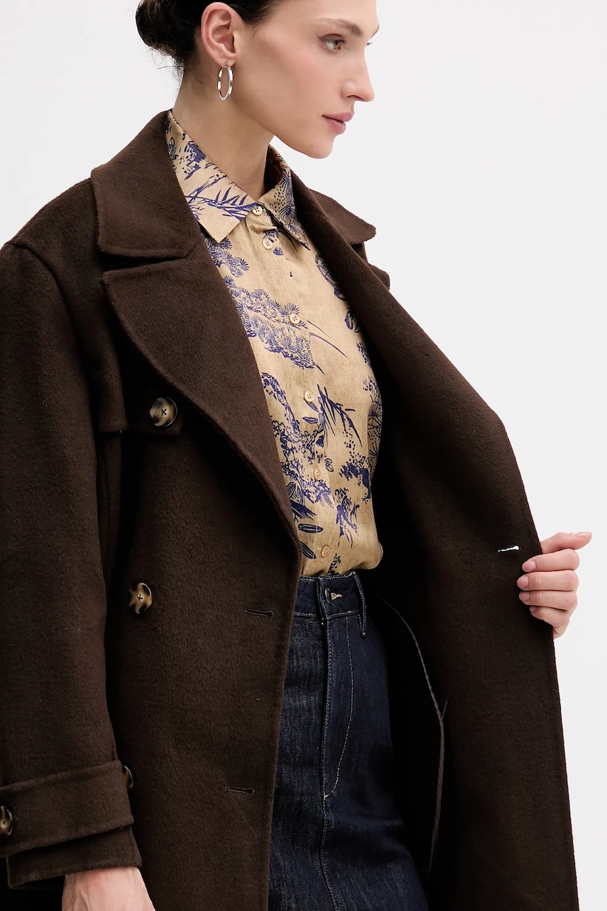 Pedro del Hierro płaszcz z dodatkiem wełny kolor brązowy 7522237
