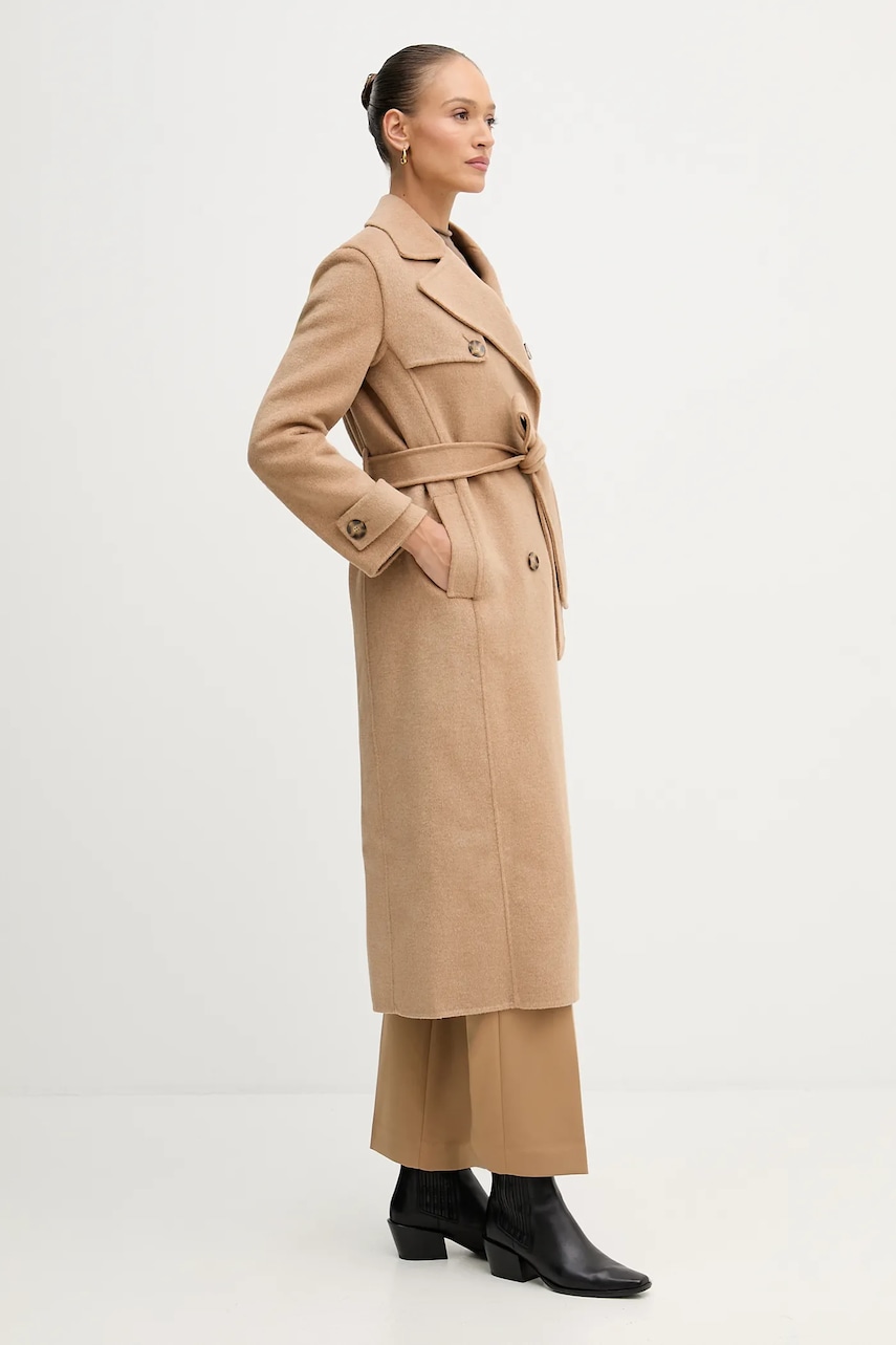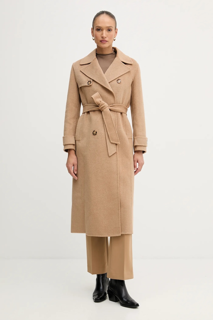 Pedro del Hierro płaszcz z dodatkiem wełny kolor brązowy 7522237