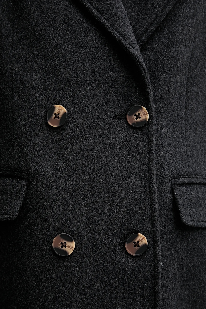 - Prosty, nie blokujący ruchów fason. - Dwurzędowe zapięcie na guziki. - Z przodu dwie wsuwane kieszenie. - Rozcięcie z tyłu. - Nieocieplony model na podszewce. - Klasyczne klapy. - Długość rękawa: 63 cm. - Długość: 120 cm. - Szerokość pod pachami: 52 cm. - Szerokość w ramionach: S.