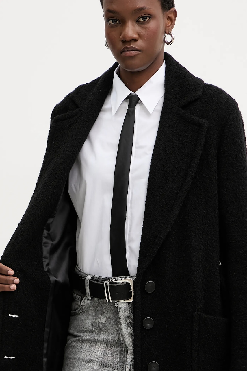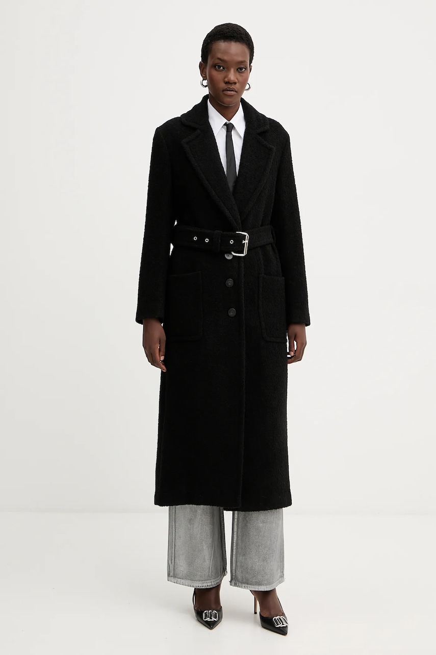 Pinko płaszcz z dodatkiem wełny kolor czarny 105695 A2UB