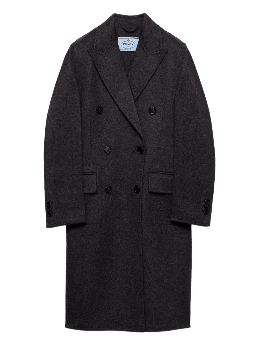 grey double-breasted fastening peak lapels flap pockets back vent triangle logo