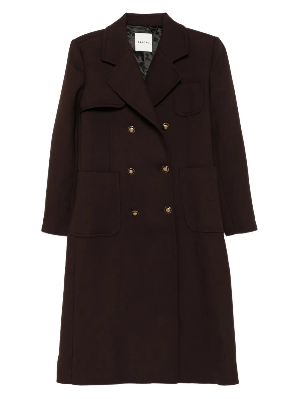 SANDRO double-breasted patch-pocket coat - Brown