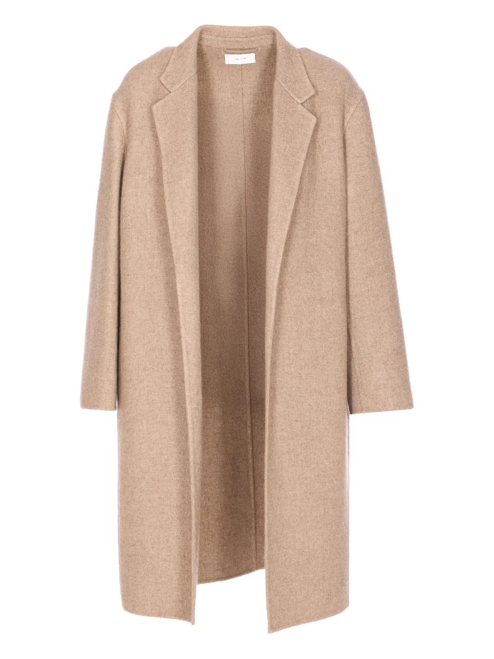 dark grey wool blend high collar side pockets hidden front closure double-breasted