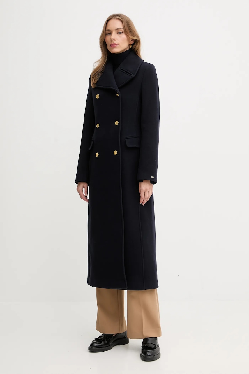Tommy Hilfiger płaszcz z dodatkiem wełny kolor granatowy WW0WW48415
