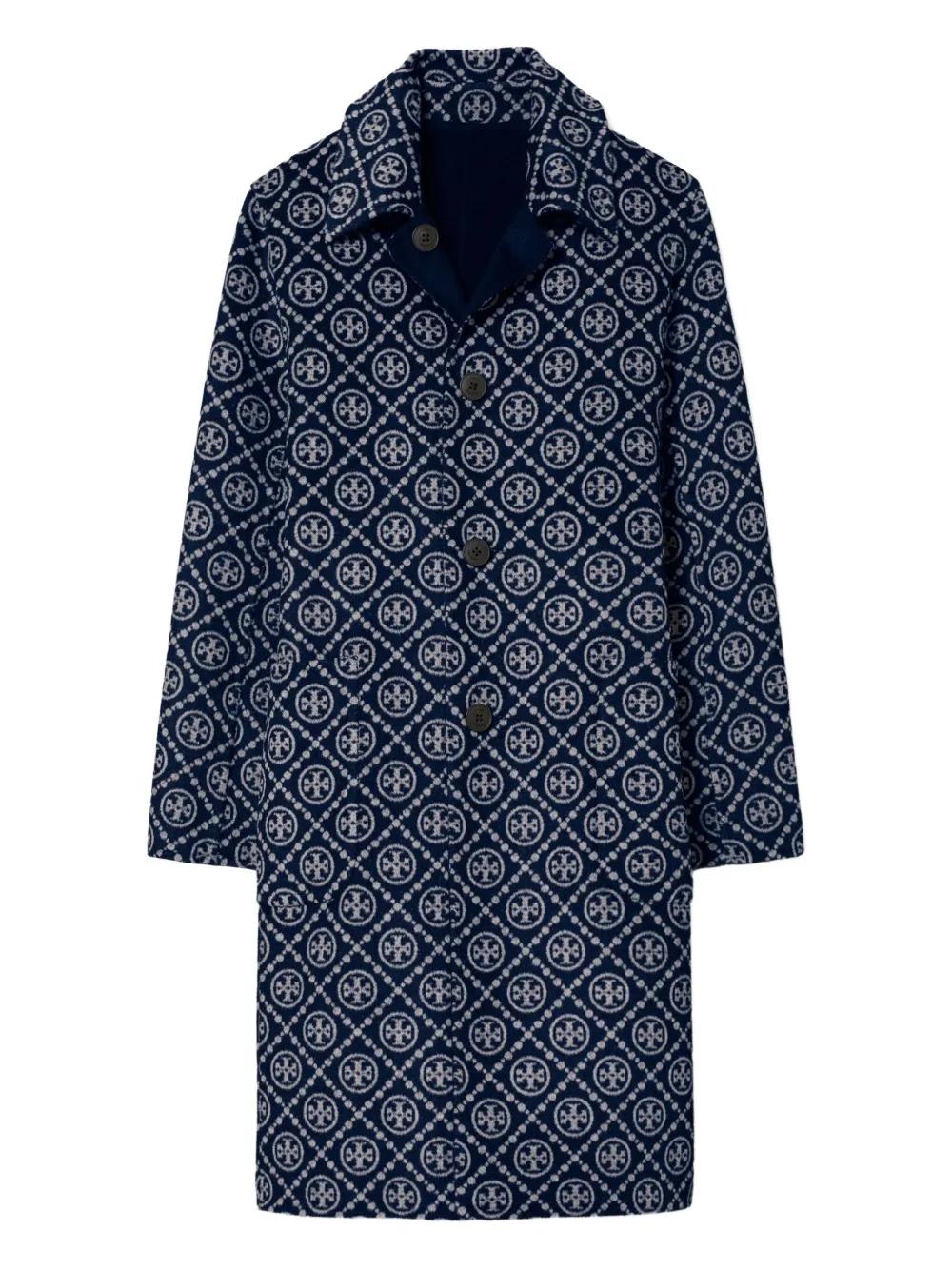 Tory Burch monogram jacquard wool coat - Blue