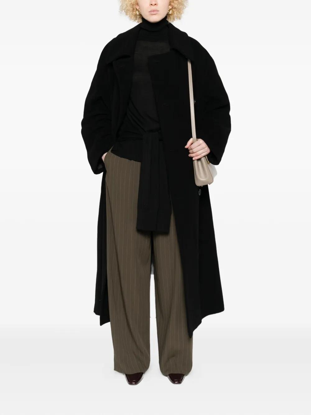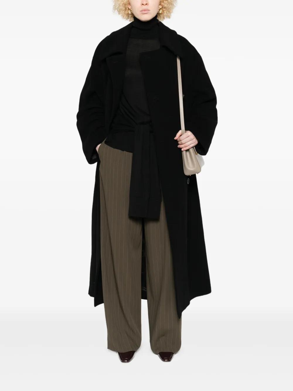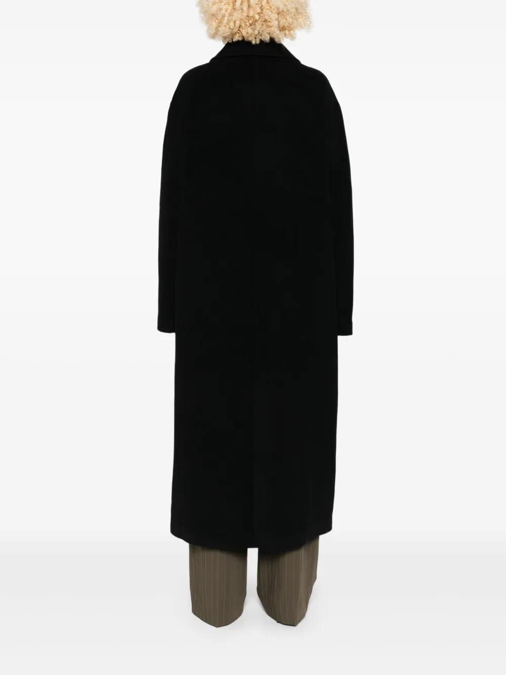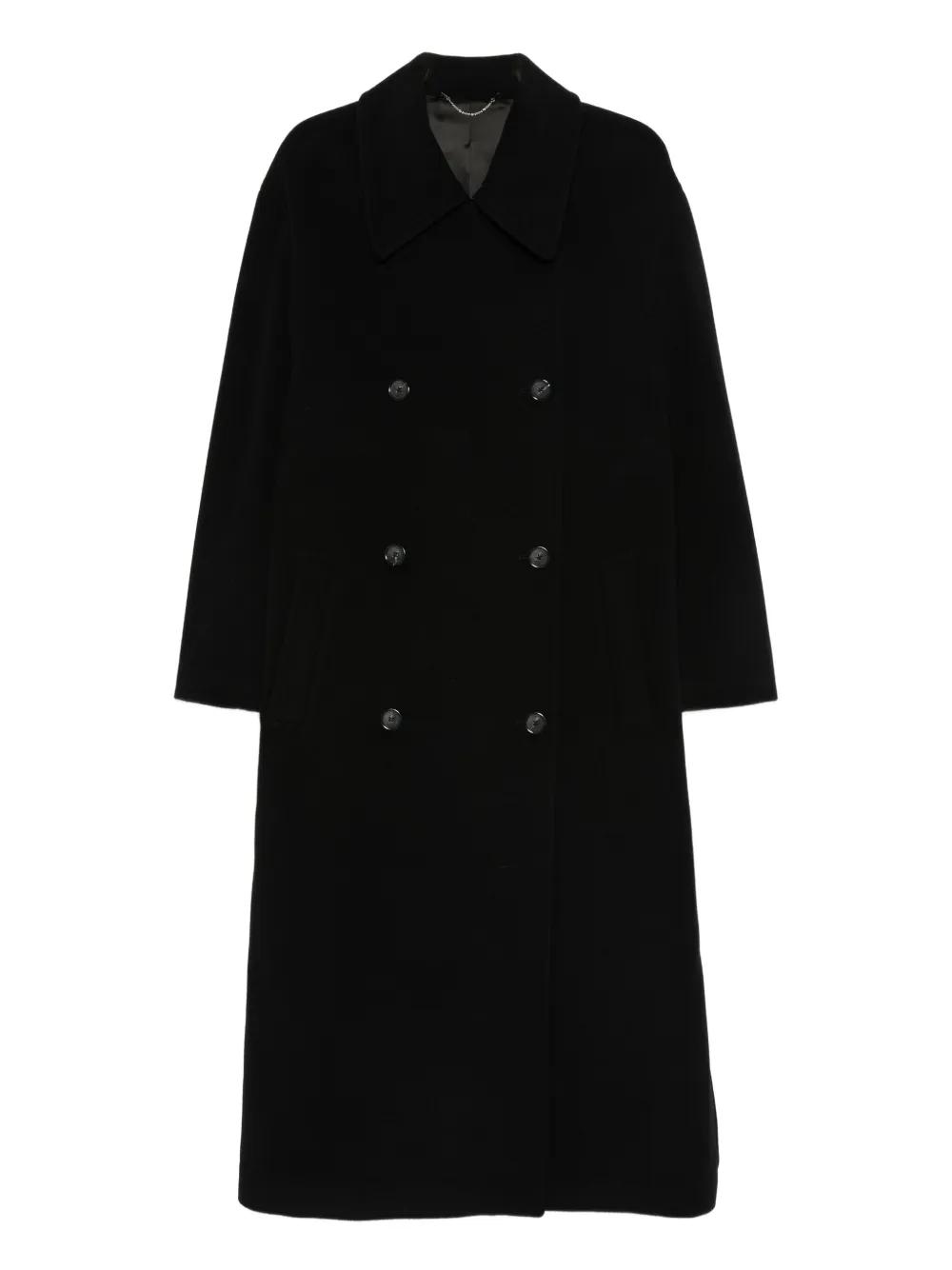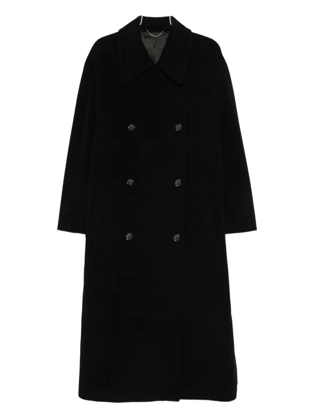 black double-breasted fastening button closure notched lapel long sleeves welt pockets