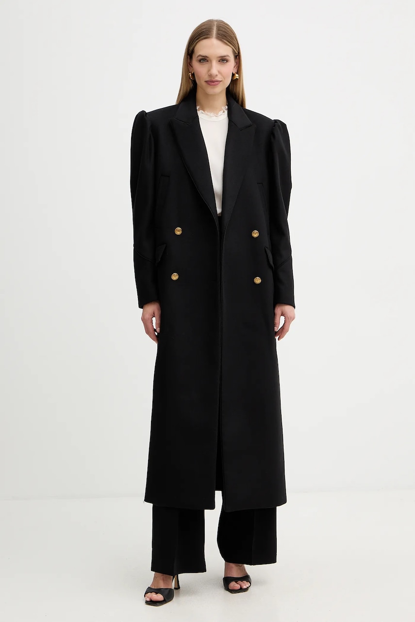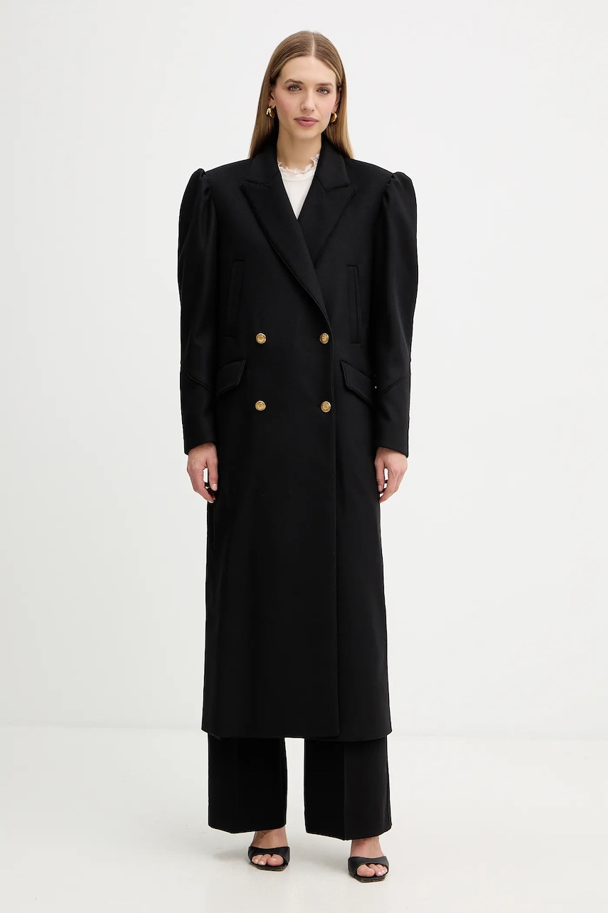 Twinset płaszcz z dodatkiem wełny kolor czarny 252TS2310