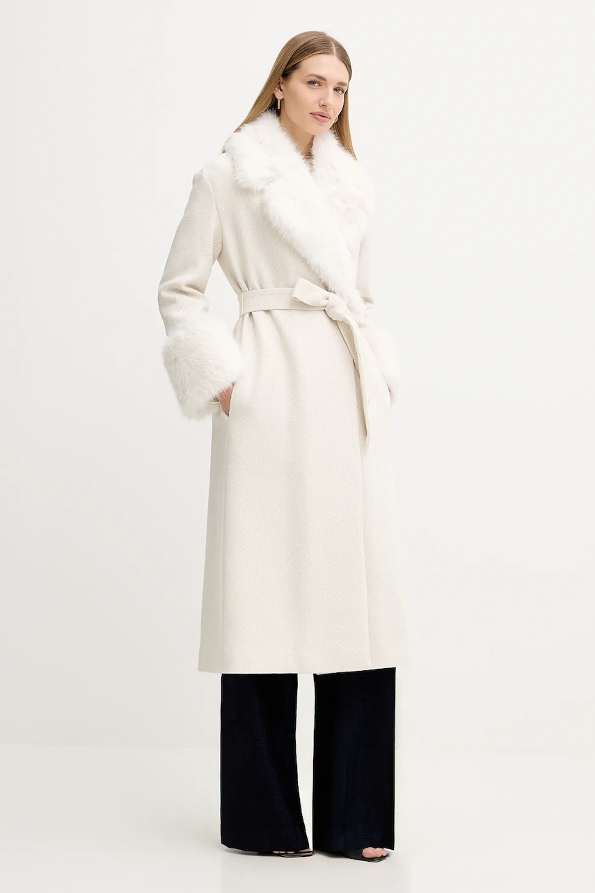 Twinset płaszcz z domieszką wełny kolor beżowy 252TT2040