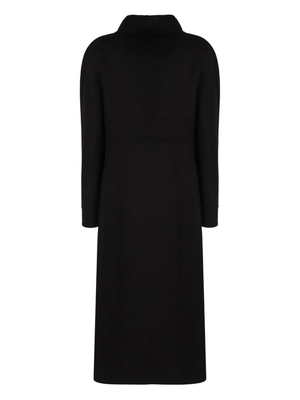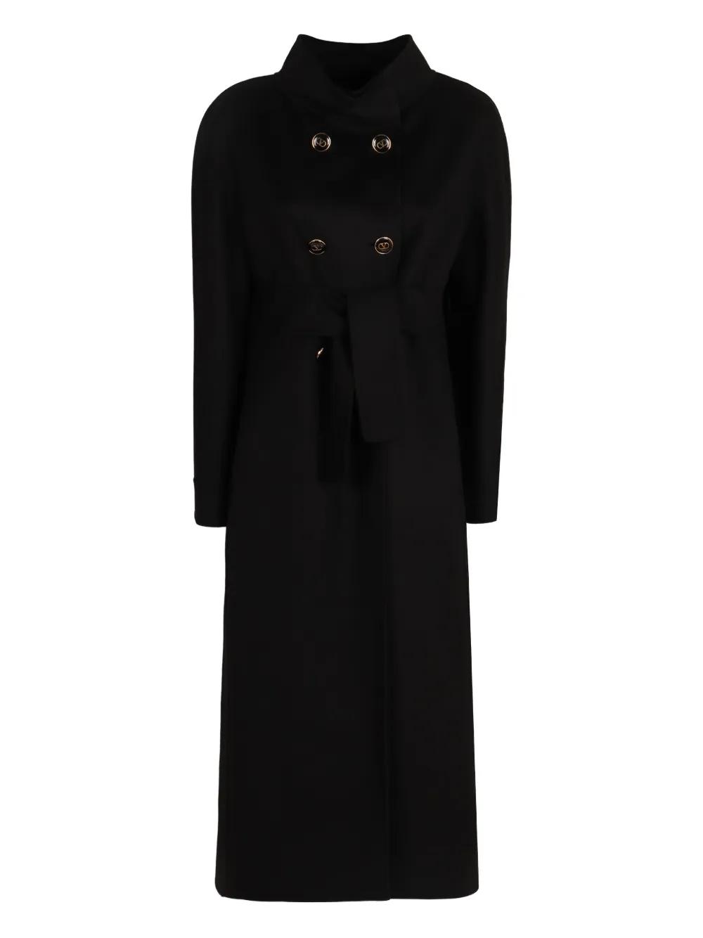 black double-breasted fastening logo detail buttons coordinated waist belt cashmere-wool blend