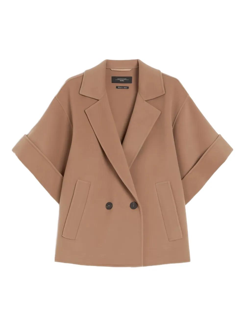 brown virgin wool double-breasted fastening short sleeves wide cuffs side pockets