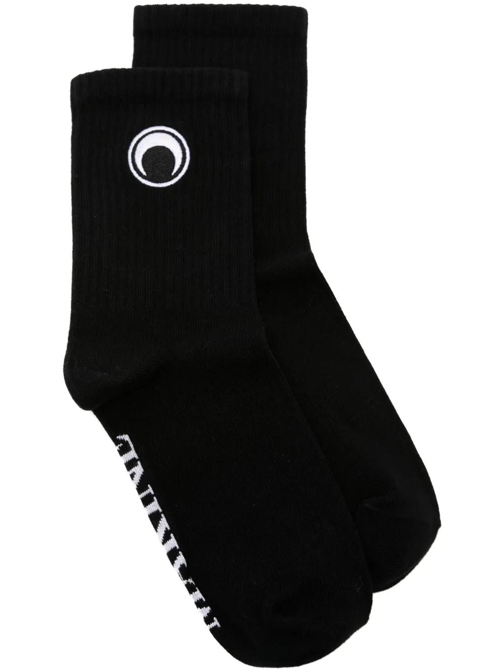 black stretch-cotton ribbed ankles logo patch to the side signature Crescent Moon motif intarsia-knit logo mid-calf length Be sure before opening, as socks and hosiery can only be returned in their original, unopened packaging.