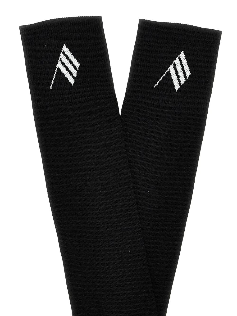 black white jacquard logo long Be sure before opening, as socks and hosiery can only be returned in their original, unopened packaging.