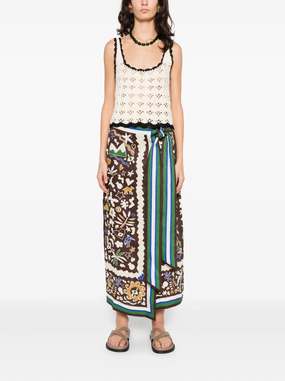 ALEMAIS Maroc graphic midi skirt - Brown