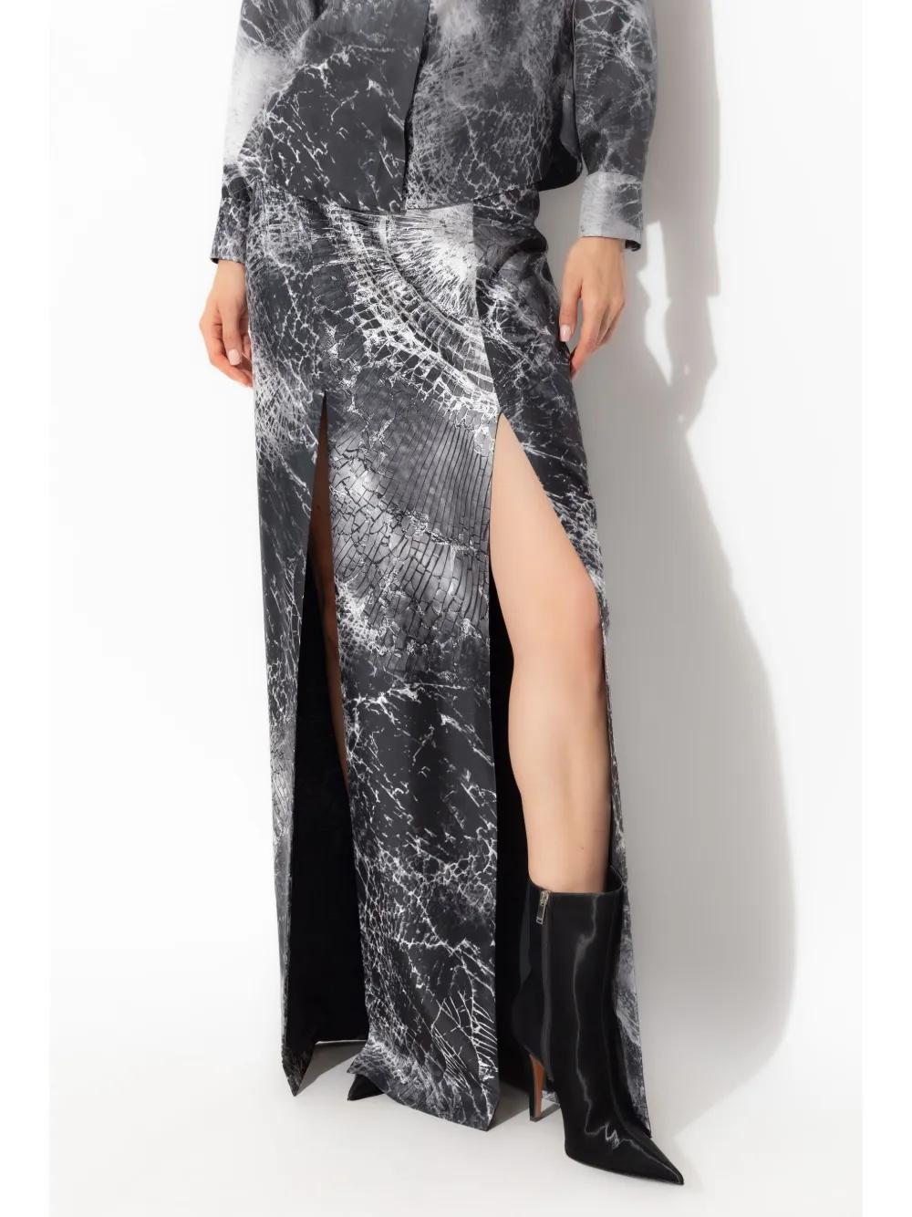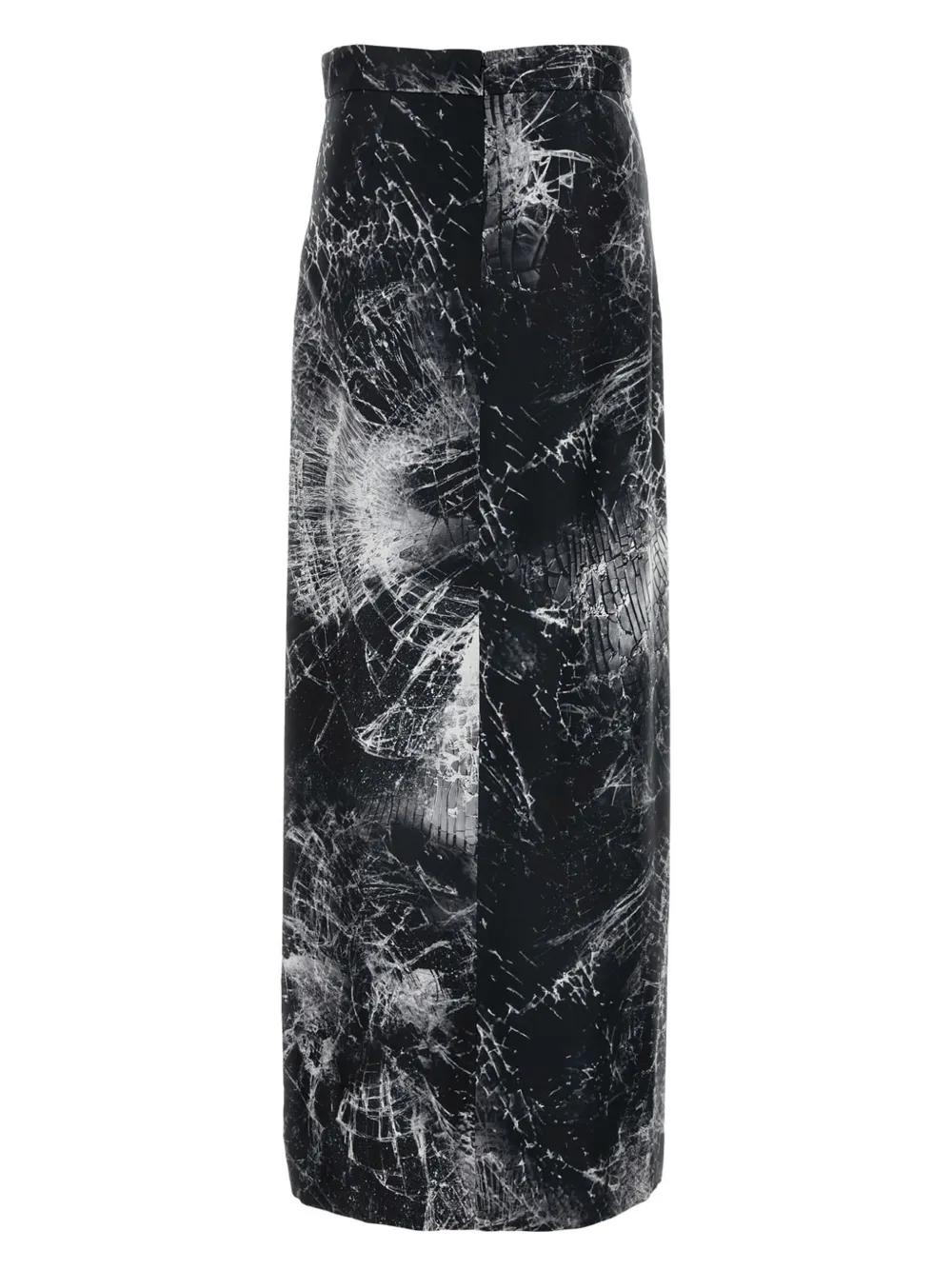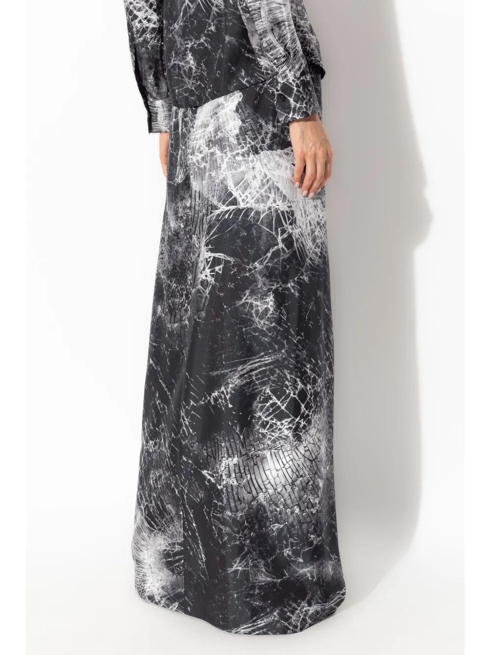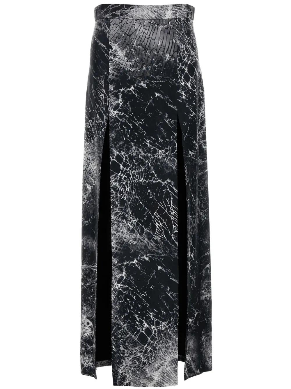 black/grey silk hook and zip fly fastening cut-out detailing abstract pattern print
