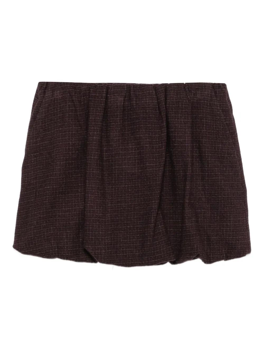 brown pleated design elasticated waistband asymmetric hemline midi length cotton