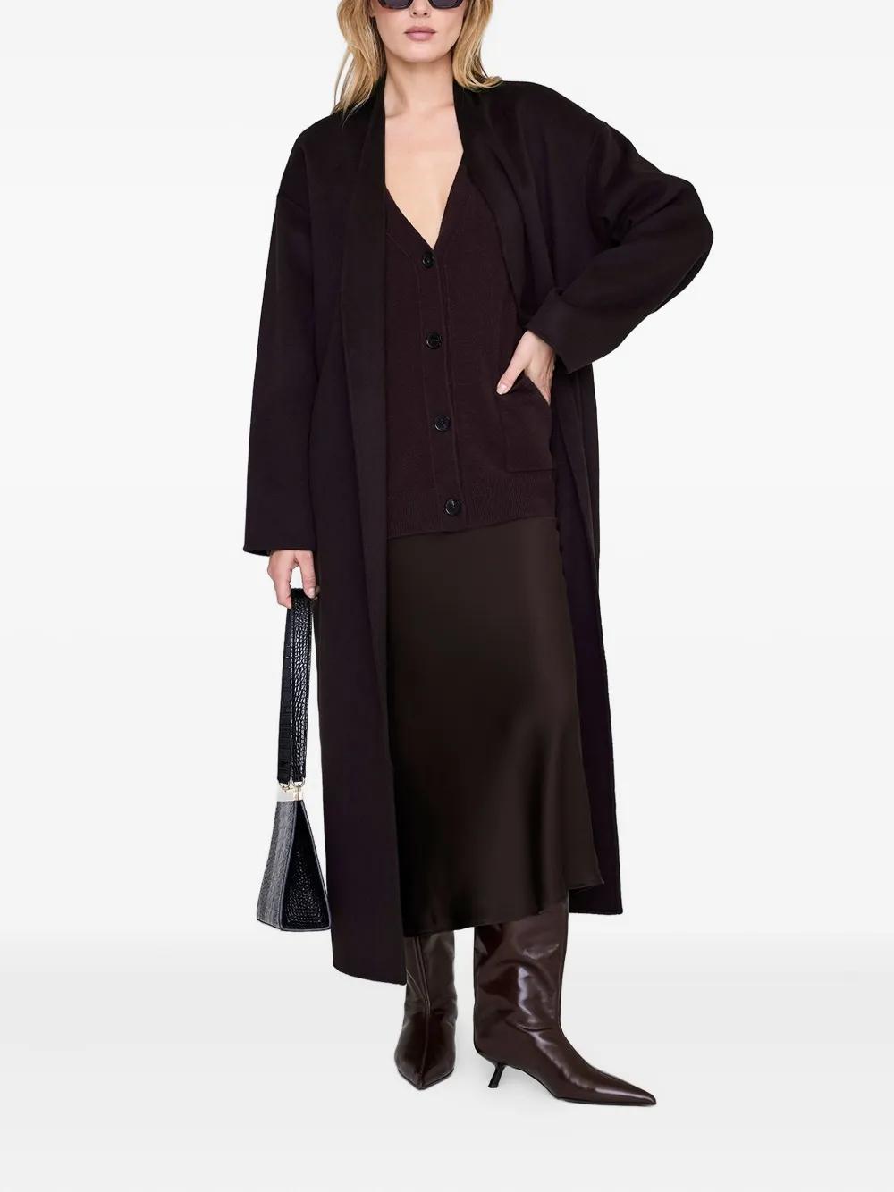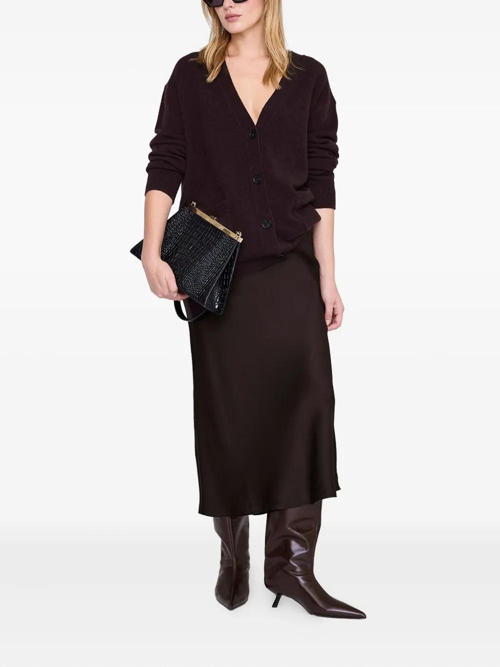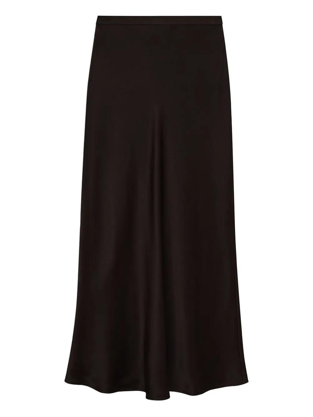 black silk bias cut A-line elasticated waistband flared hem ankle-length