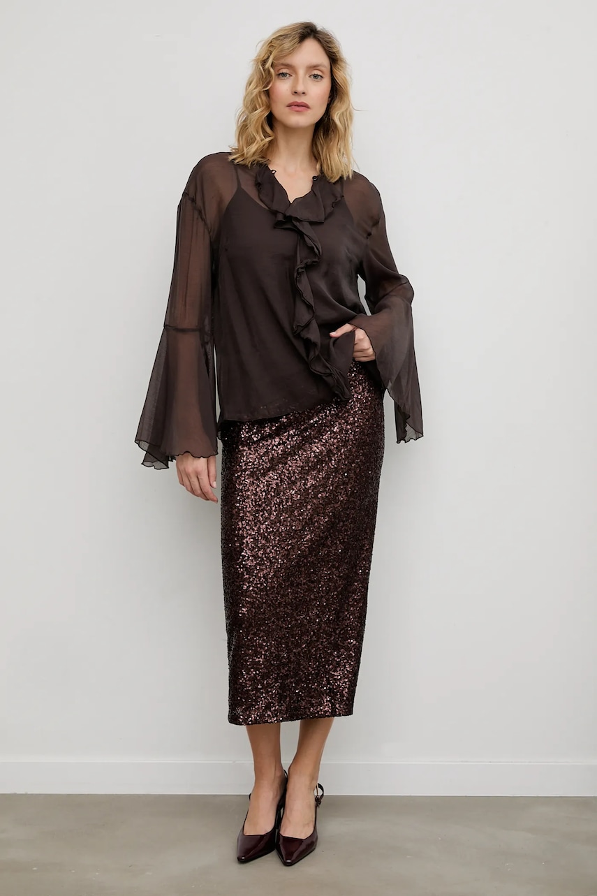 Answear.LAB spódnica kolor brązowy midi ołówkowa