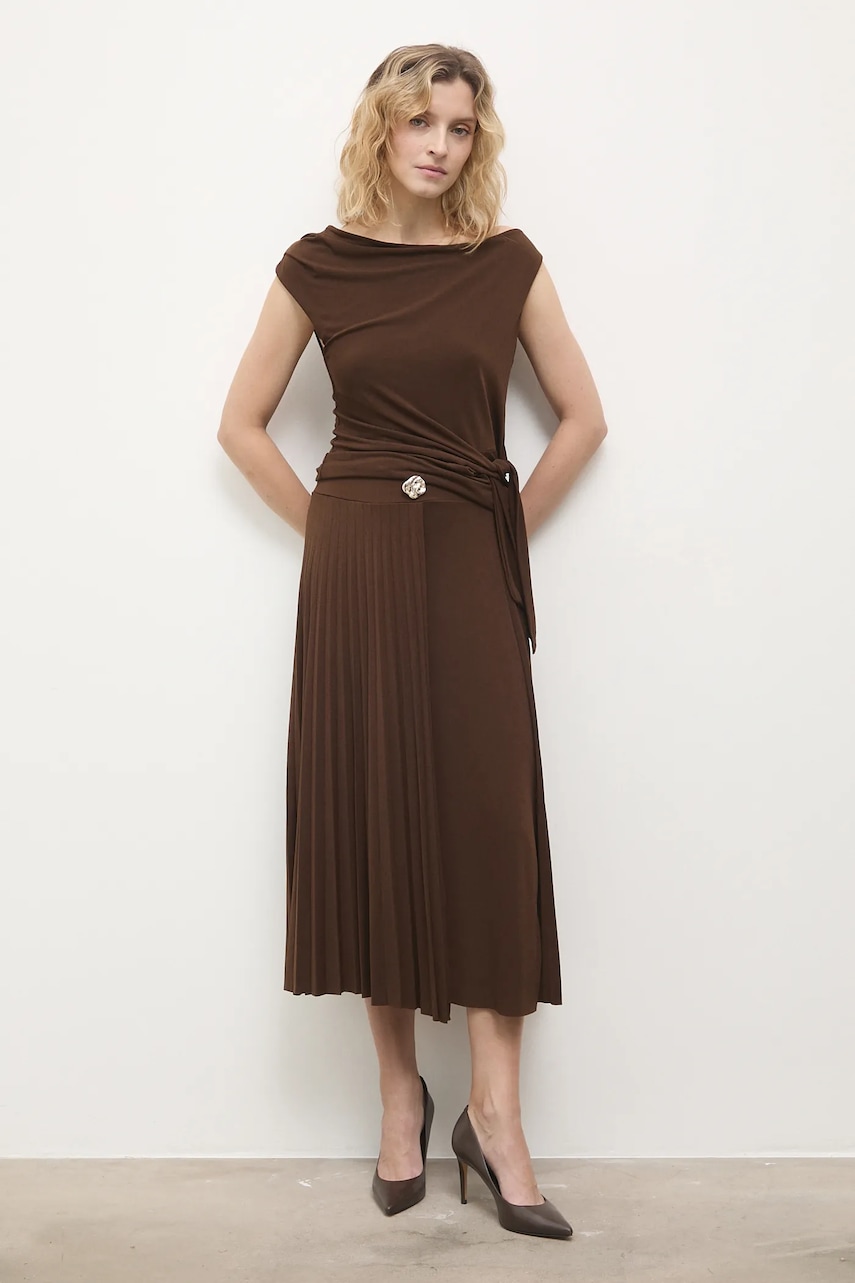 Answear.LAB spódnica kolor brązowy midi rozkloszowana