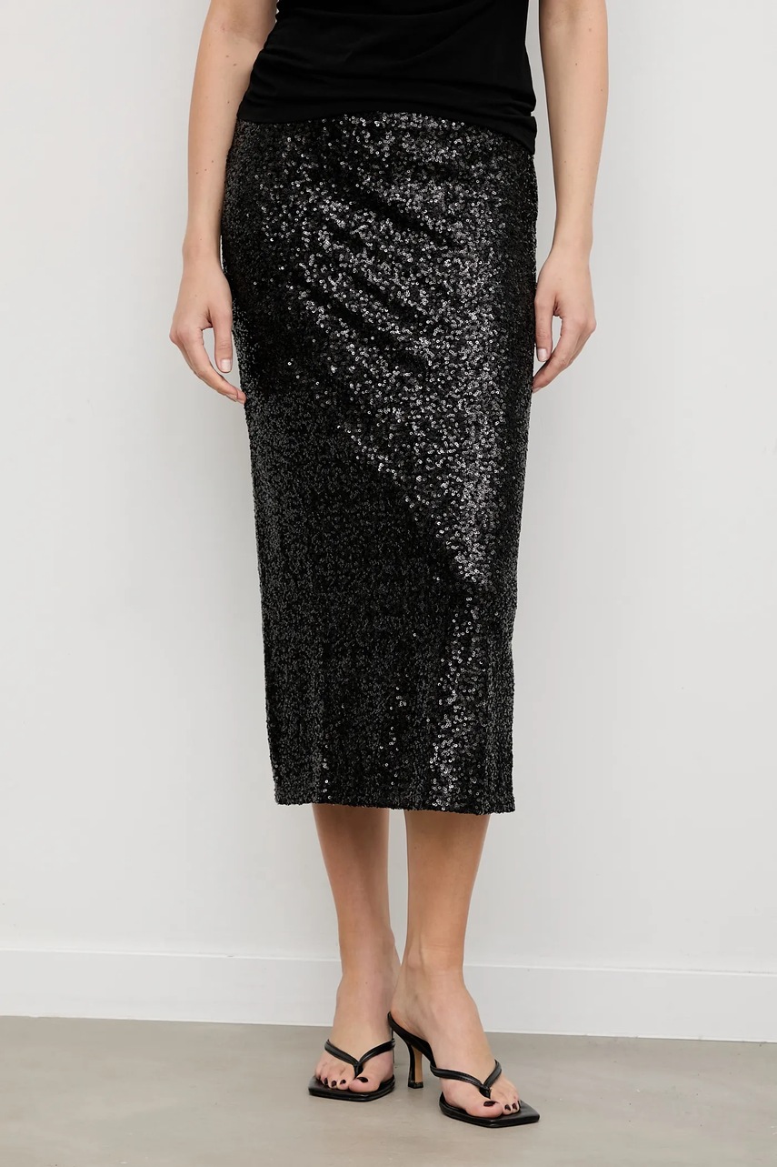 - Model na podszewce. - Ołówkowy fason. - Elastyczna listwa w pasie. - Efektowne rozcięcie. - Szerokość w pasie: 30 cm. - Długość: 80 cm. - Wymiary podane dla rozmiaru: S.