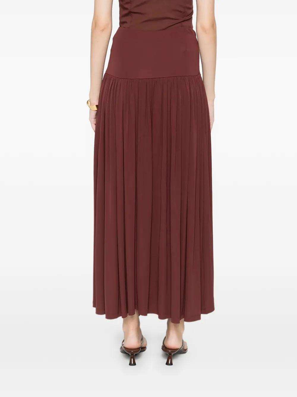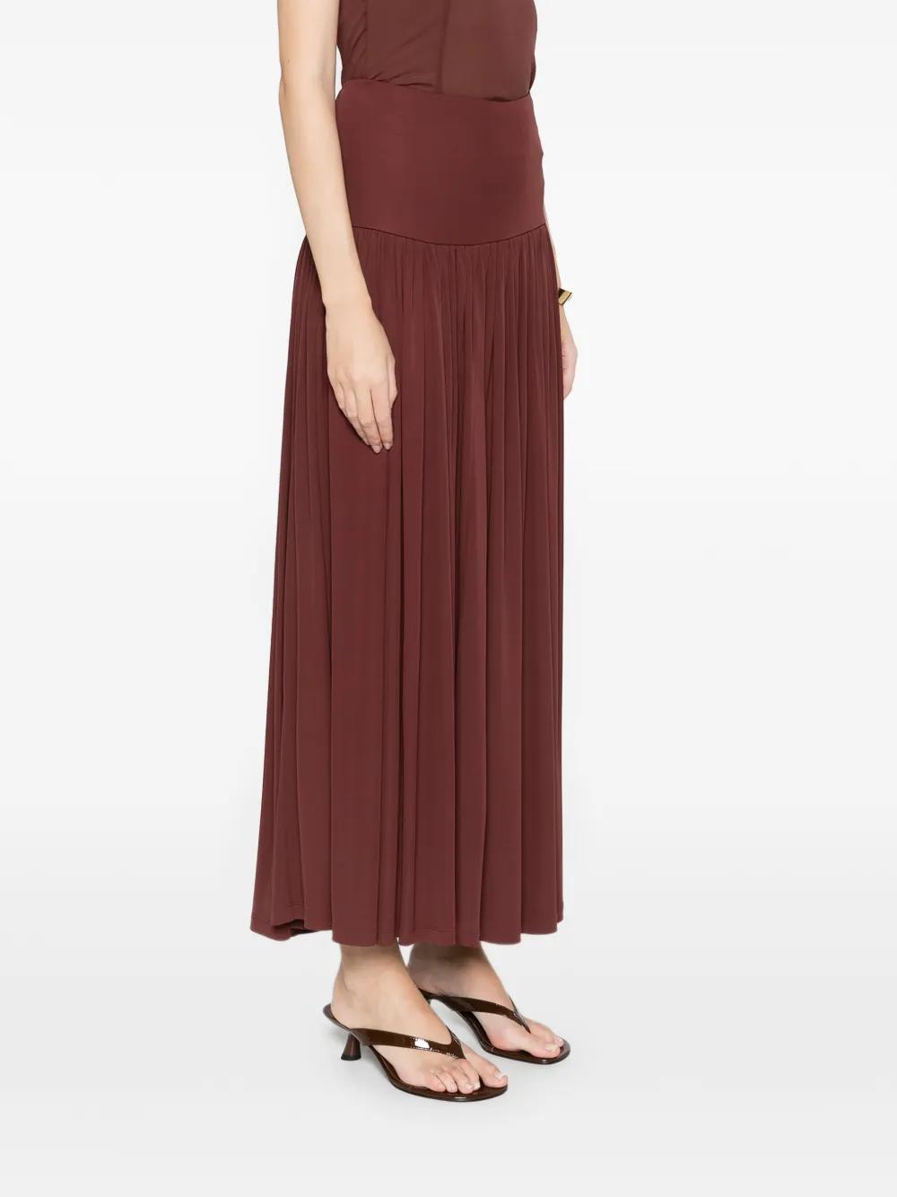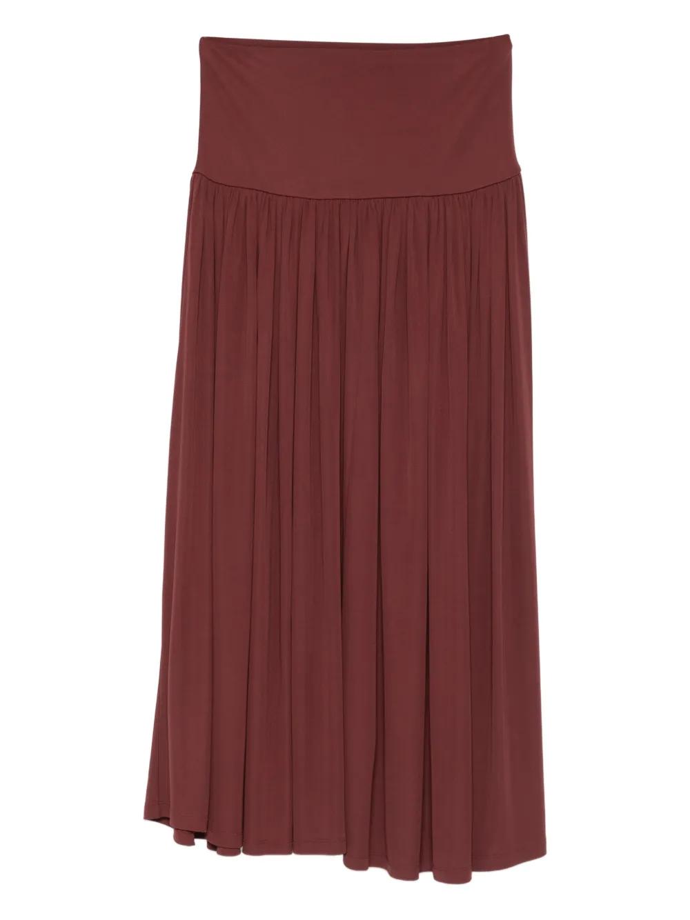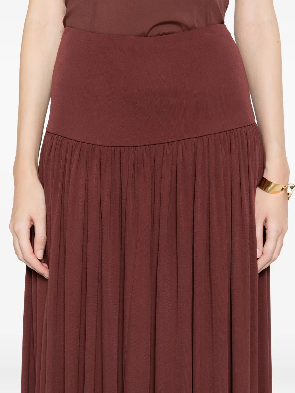 black silk satin finish concealed rear zip fastening high-waisted ruched detailing front slit two side inset pockets dart detailing to the rear silk lining straight hem floor-length