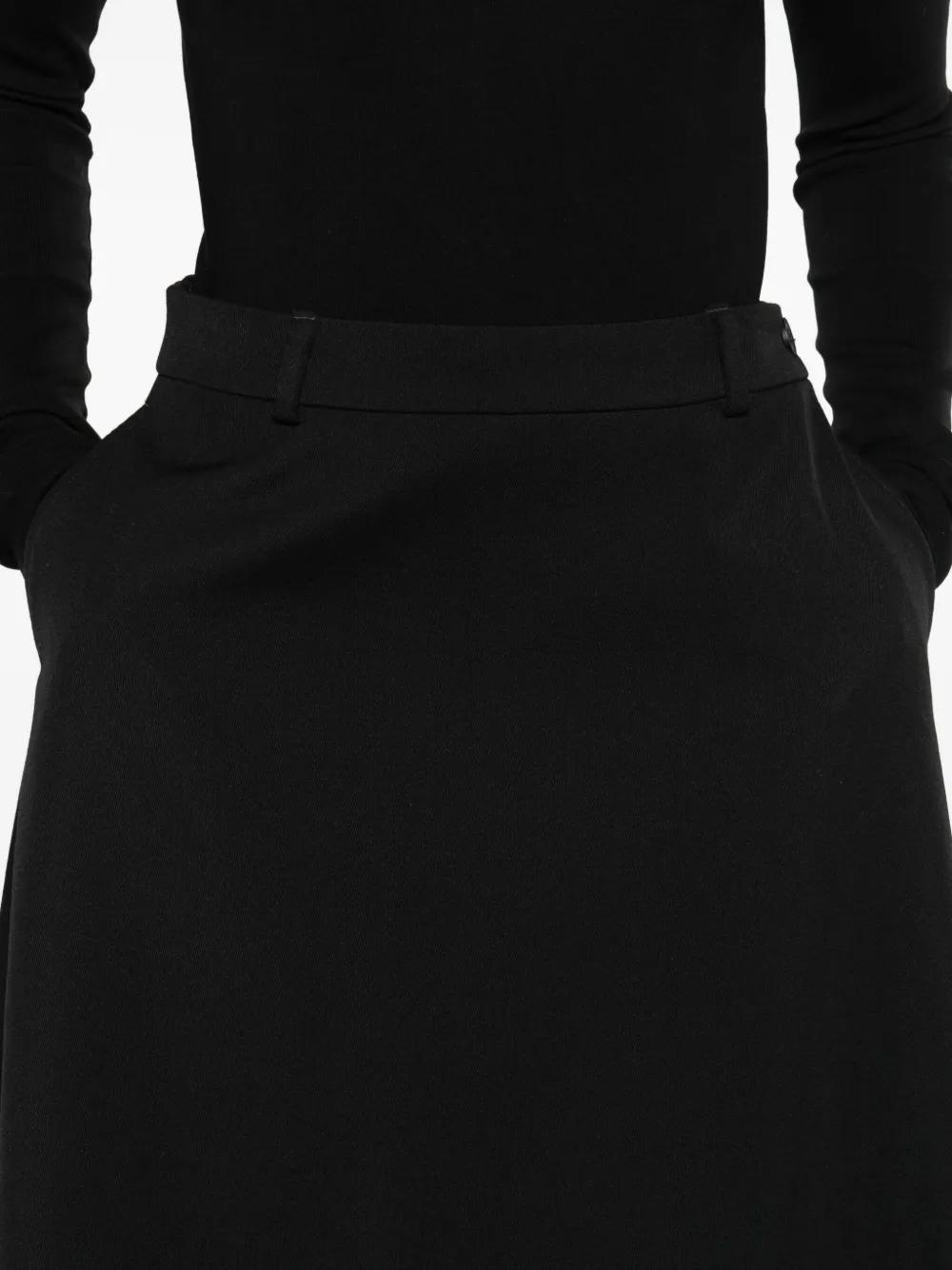 - Rozkloszowany fason. - Podwyższony stan. - Elastyczna listwa w pasie. - Satynowe wykończenie. - Gładka tkanina. - Model o długości maxi. - Szerokość w pasie: 35 cm. - Długość z przodu: 82 cm. - Długość z tyłu: 86 cm. - Wymiary podane dla rozmiaru: S.