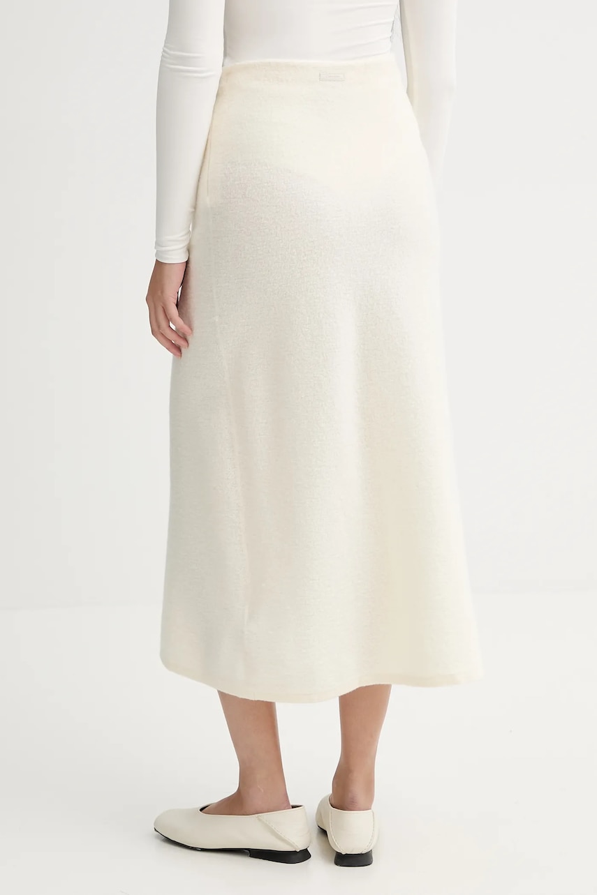 Calvin Klein spódnica wełniana kolor beżowy midi rozkloszowana LV144E366G