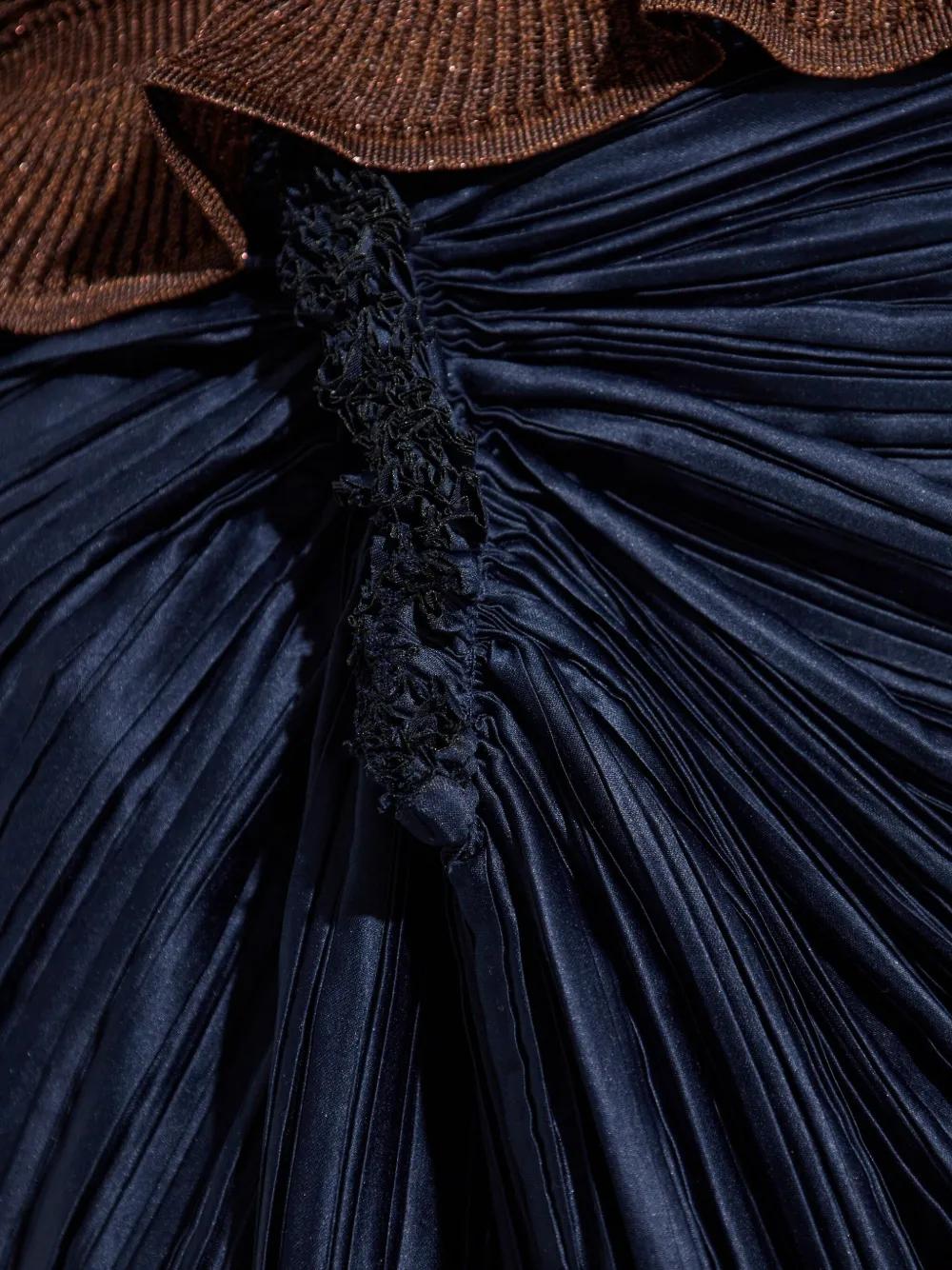 blue pleated texture draped design gathered waist