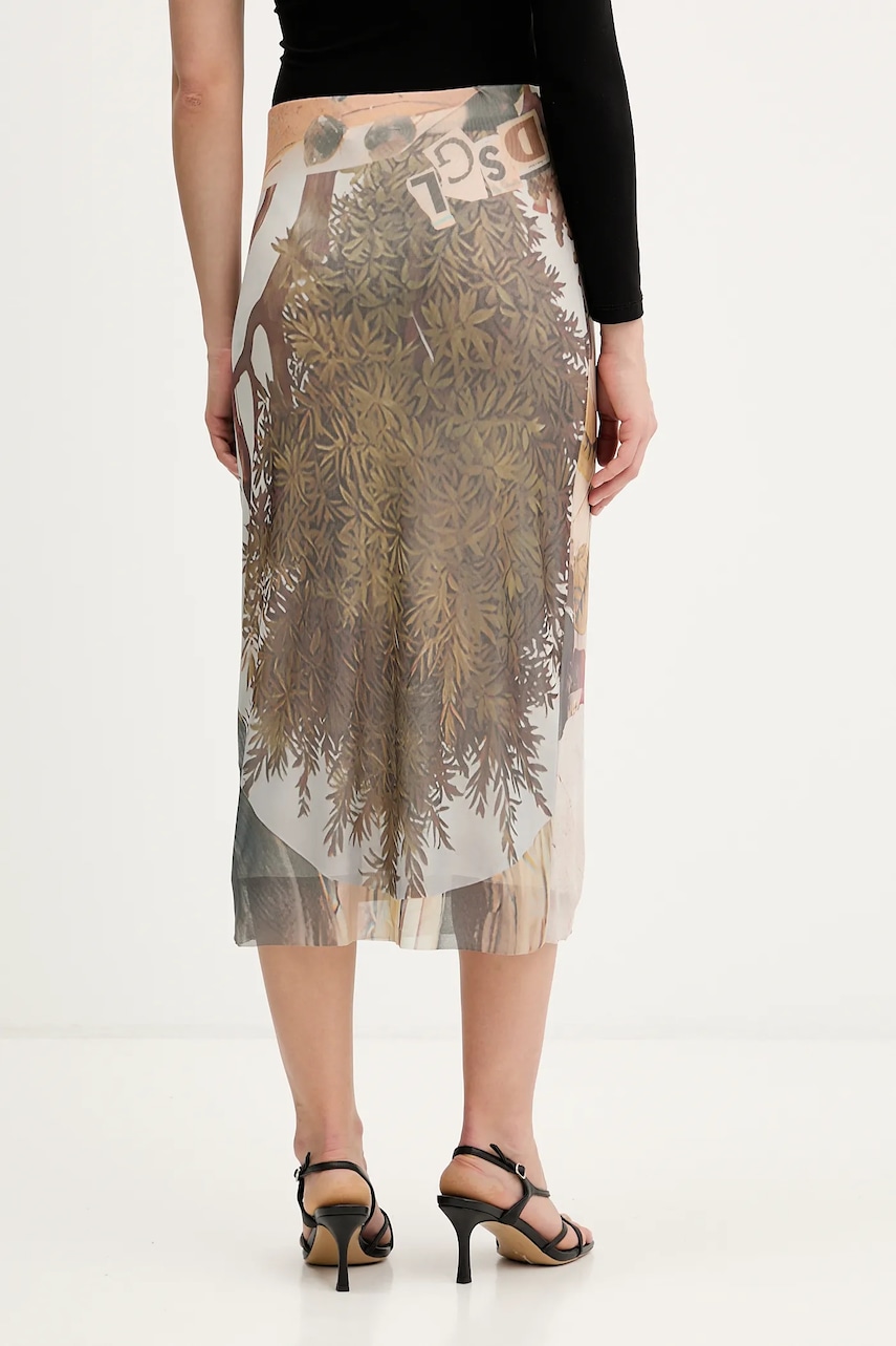 Desigual spódnica COLLAGE kolor brązowy midi prosta 25WWFK05