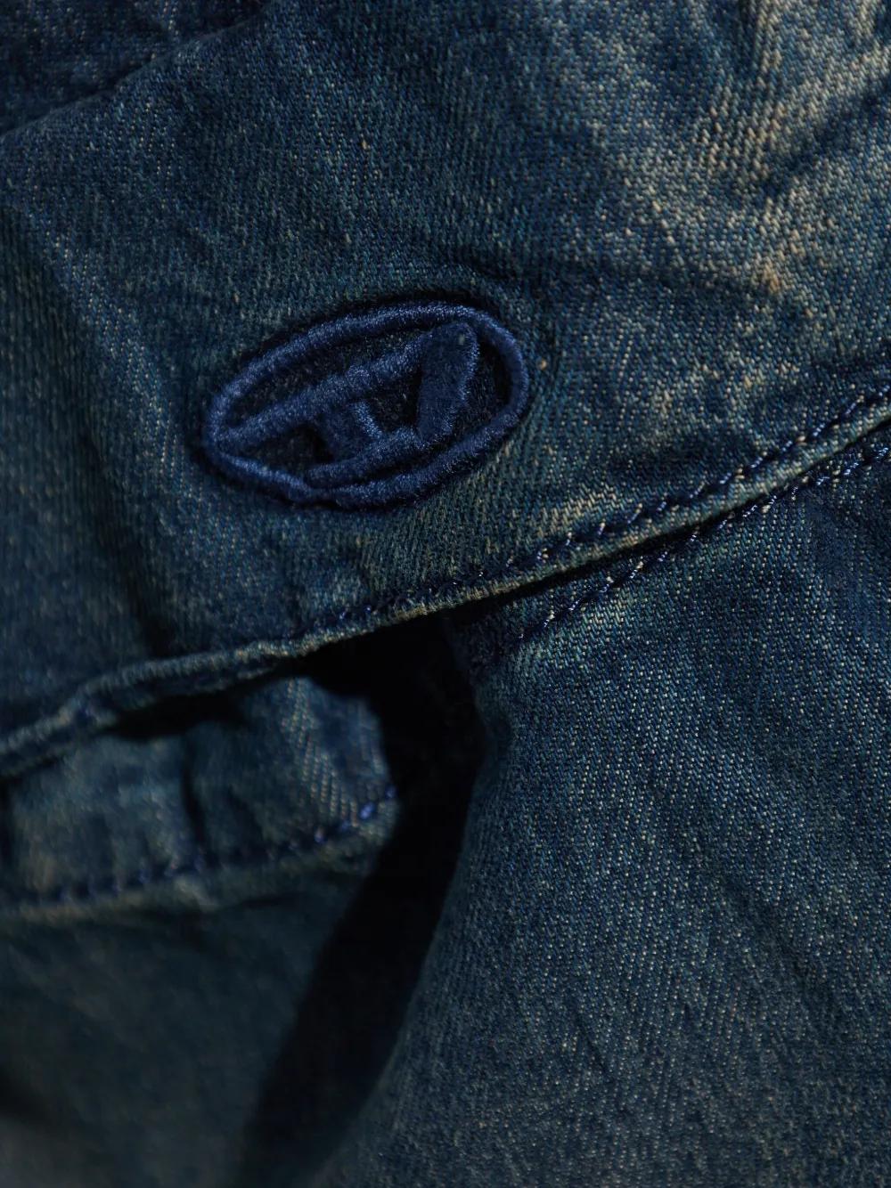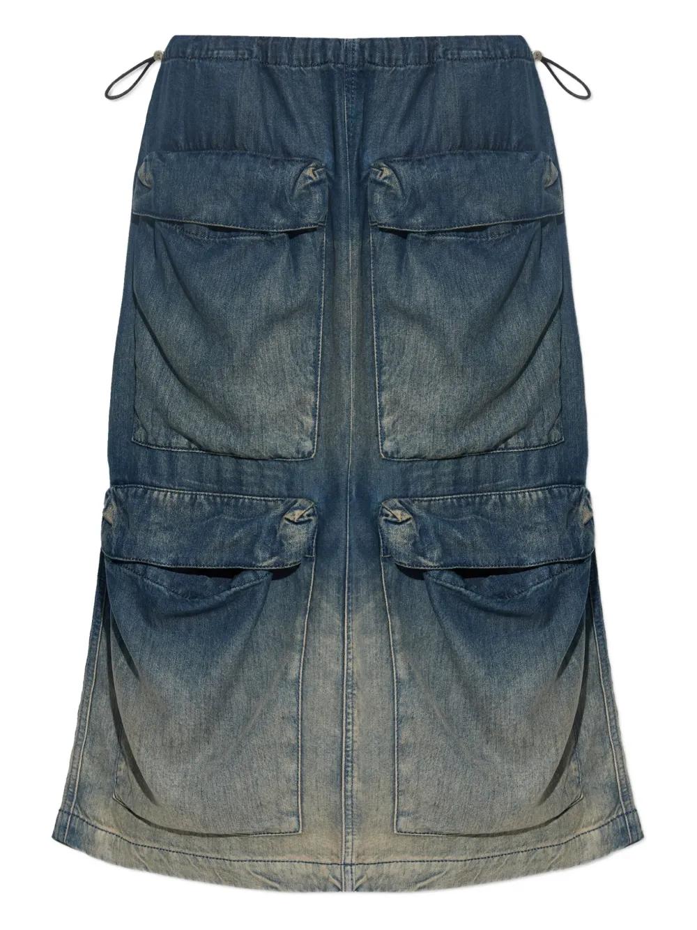 blue multiple pockets drawstring waist faded wash embroidered logo