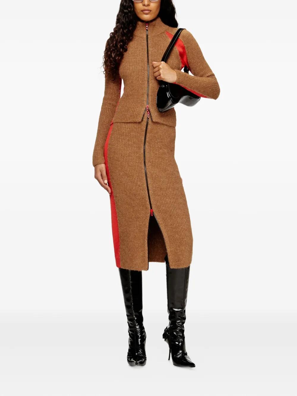 Diesel ribbed side-stripes zip-front midi straight skirt - Brown