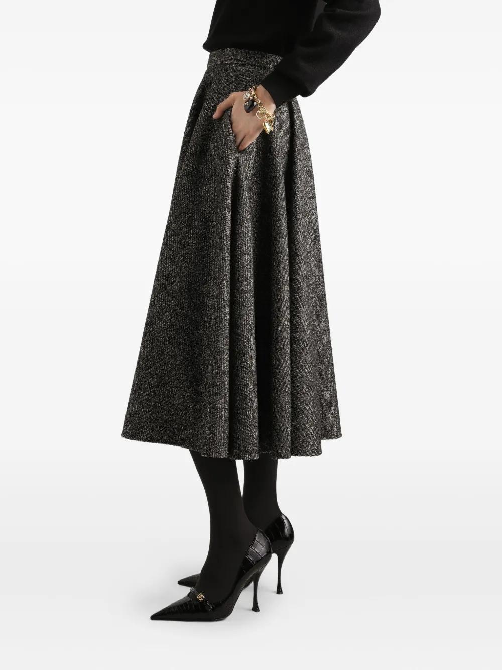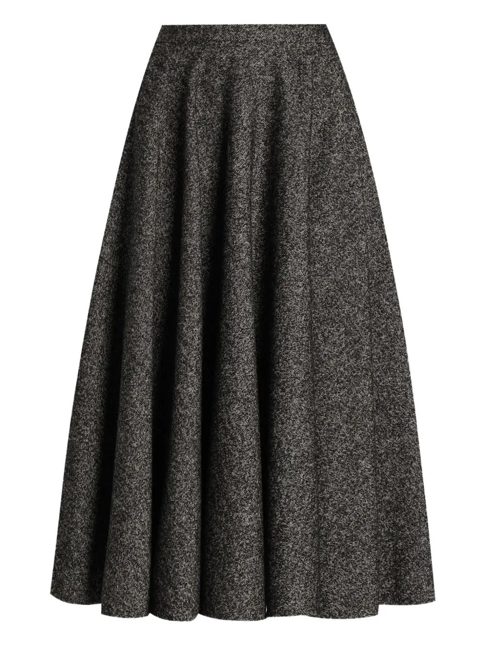 - Model częściowo wykonany z wełny pochodzącej z recyklingu. - Rozkloszowany fason. - Wysoki stan z elastyczną listwą zapobiega zsuwaniu się podczas ruchu. - Model bez podszewki. - Szerokość w pasie: 30 cm. - Długość: 87 cm. - Wymiary podane dla rozmiaru: S.