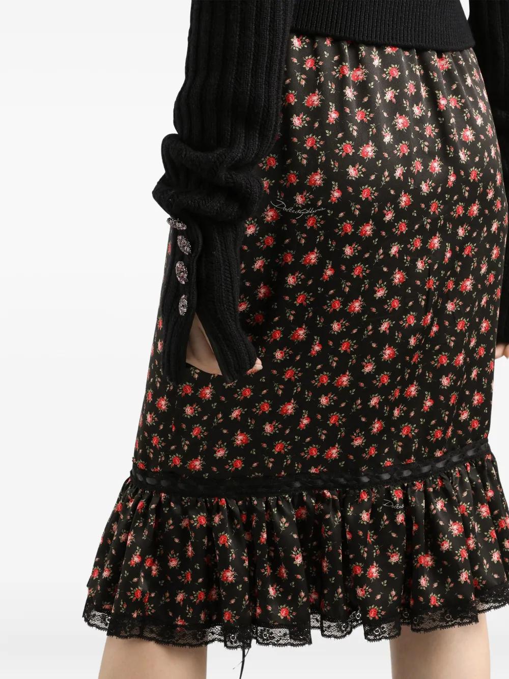 Dolce & Gabbana floral ruffled midi skirt - Black
